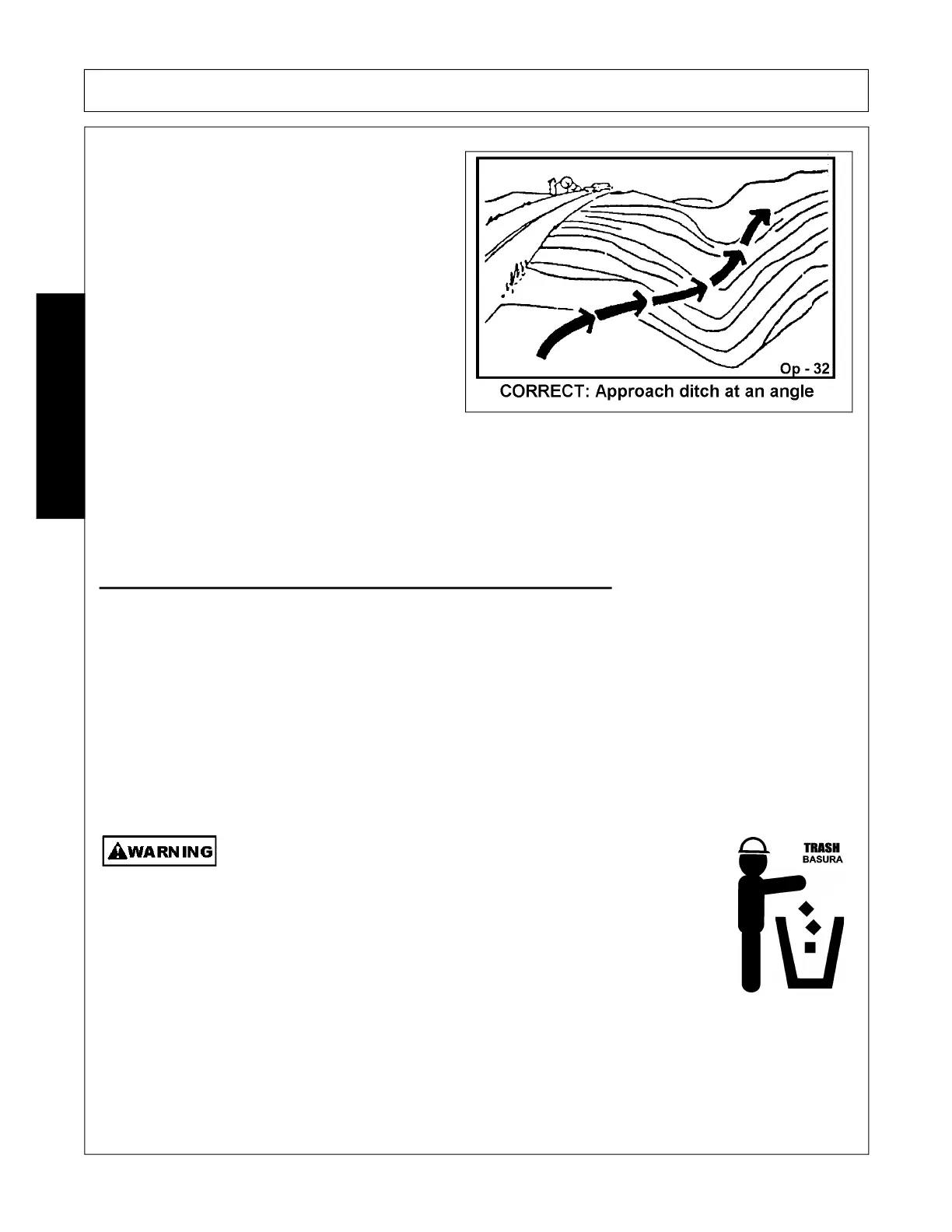 Inclines and ditches should be approached along a