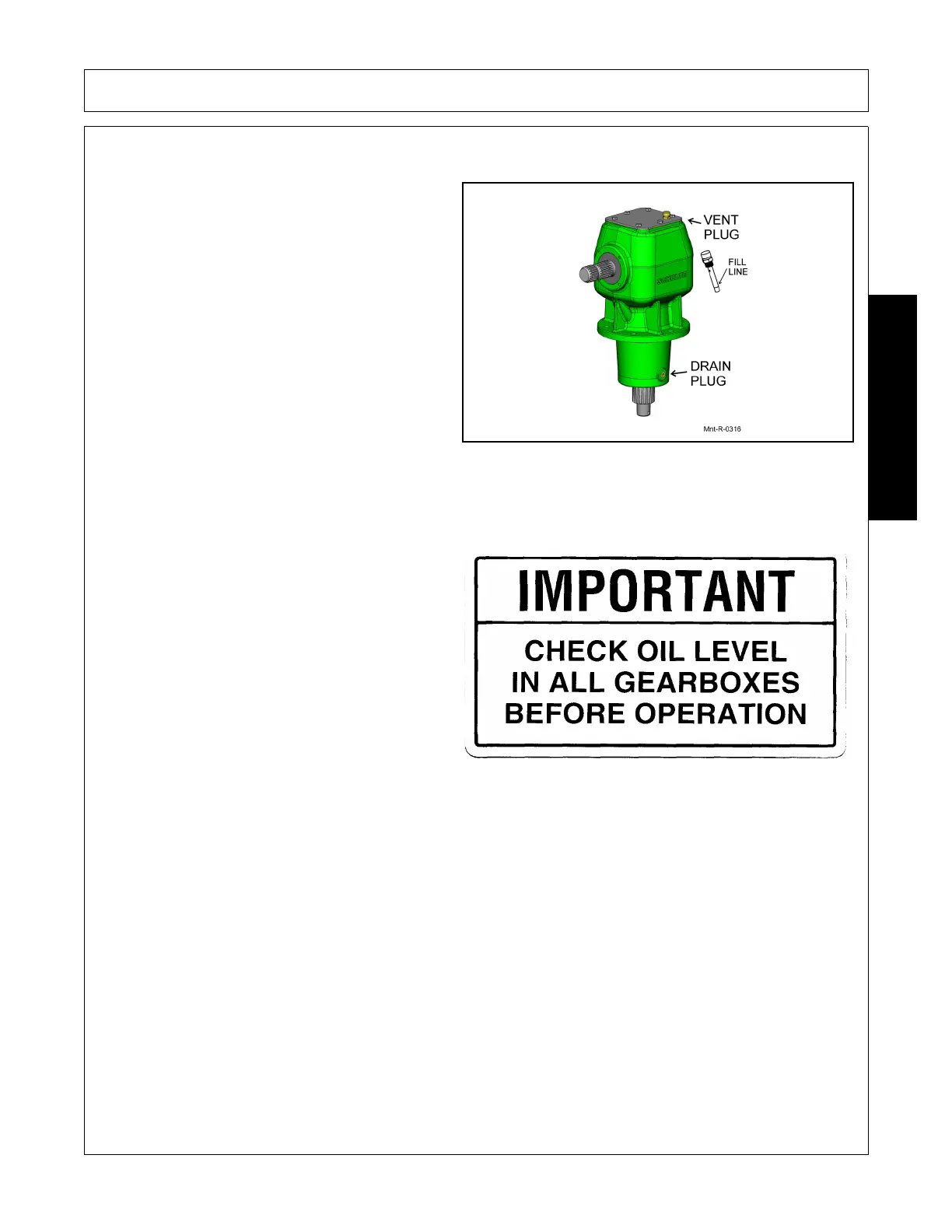 6. Fill gearbox until oil level reaches the fill line on