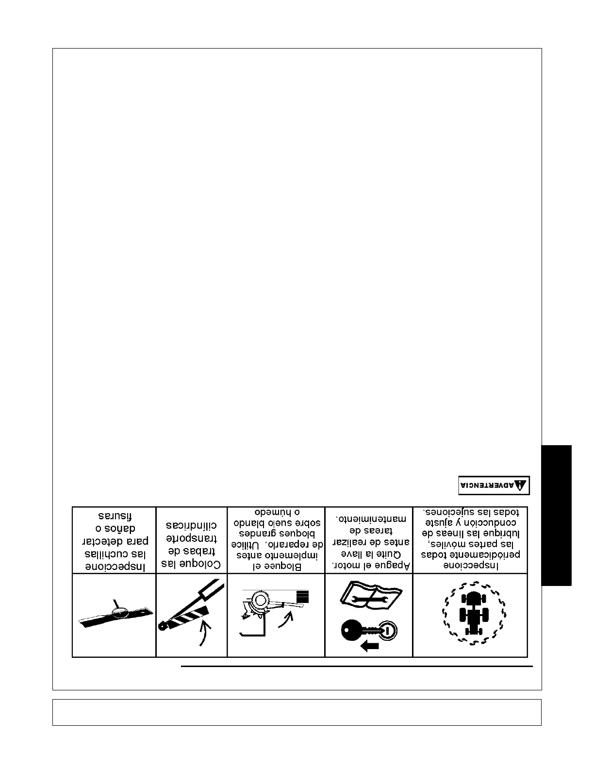 • DETENGA el movimiento de todos los implementos y APAGUE EL MOTOR DEL TRACTOR antes de realizar ninguna tarea.