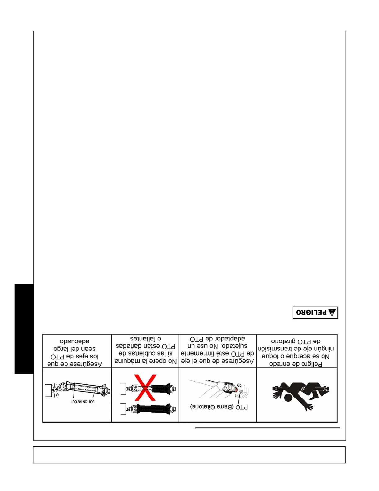 • VERIFIQUE que la línea de conducción tenga el largo adecuado entre el eje de PTO y el eje de la caja de cambios