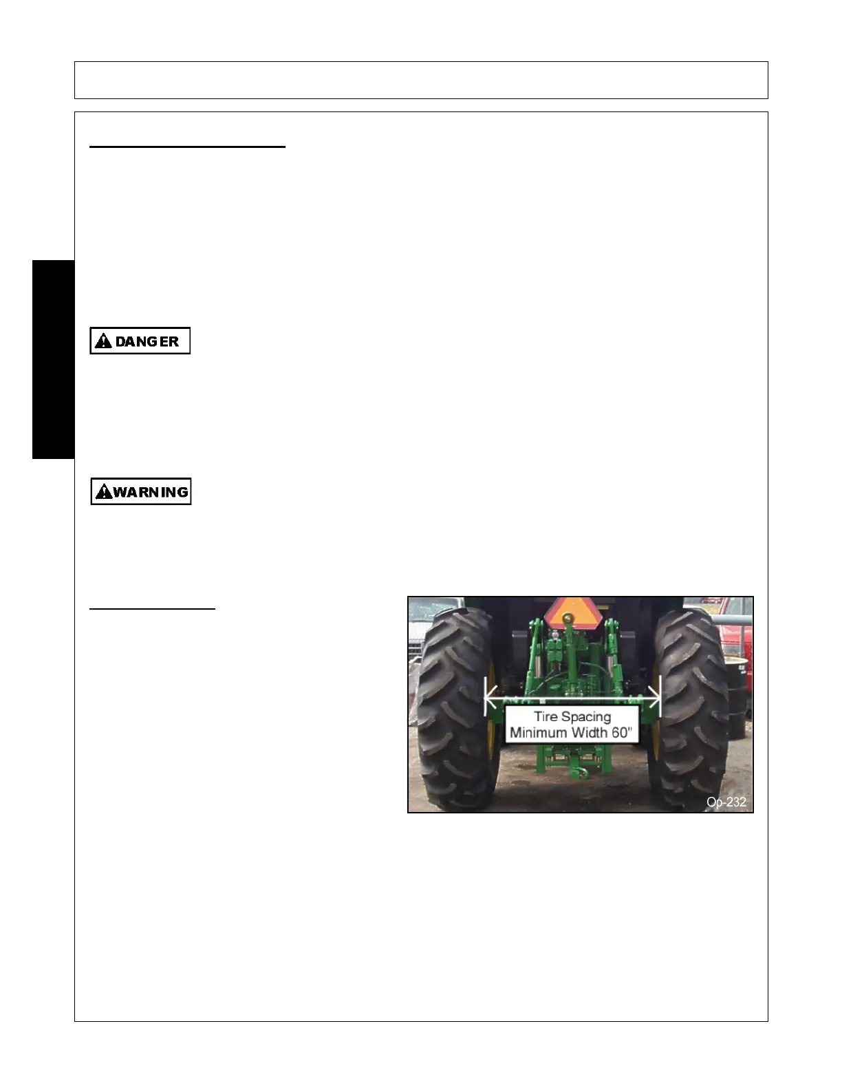 Tractor tires should be set a minimum of 60” (1.5