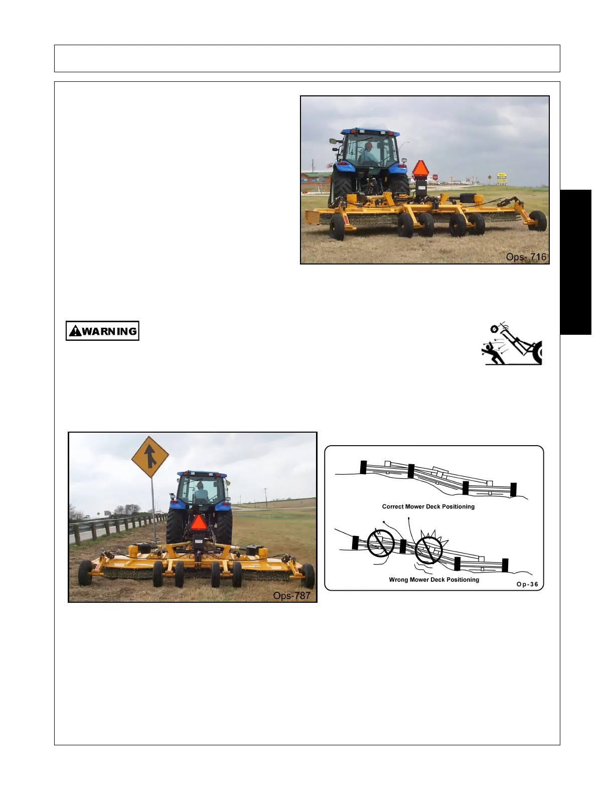 the mower deck. Always avoid operating the mower at a height or position which may cause the blades to