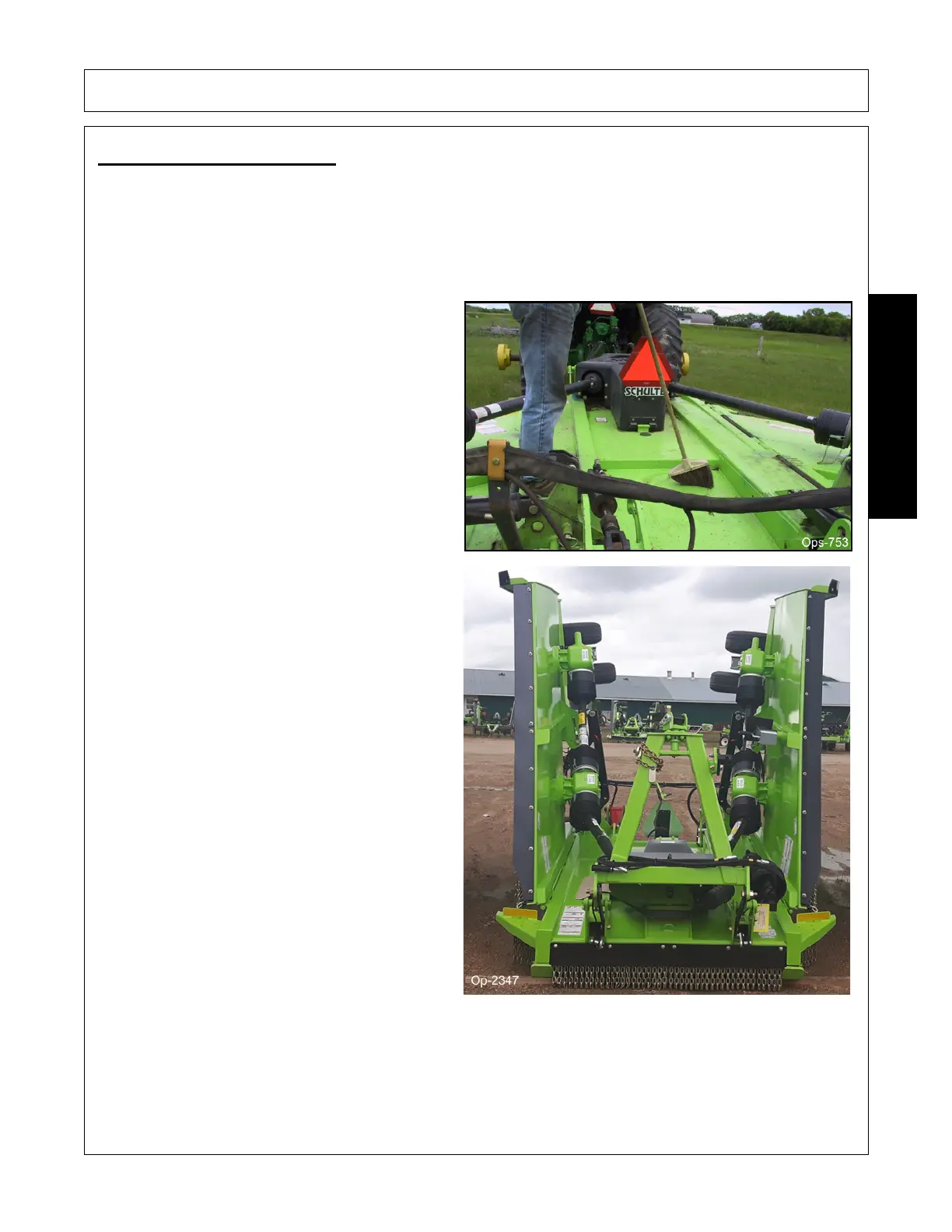 pins to prevent the wings from falling BEFORE disconnecting the cutter hitch from the tractor.