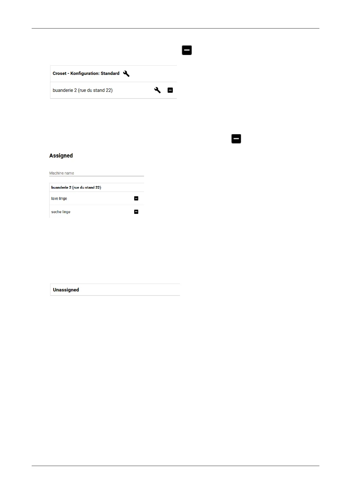 Deletion is only possible, however, if no machine is assigned to the laundry facility.