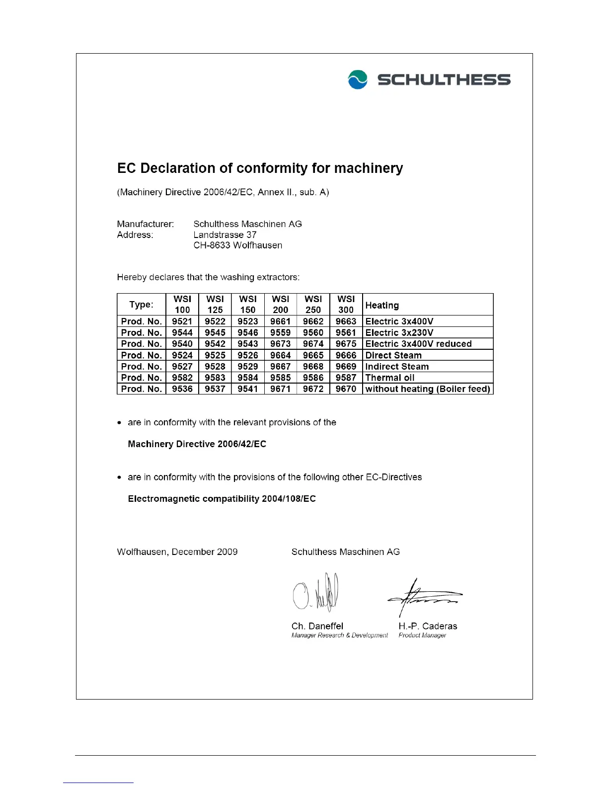 Schulthess WSI 150 - EC Declaration of Conformity