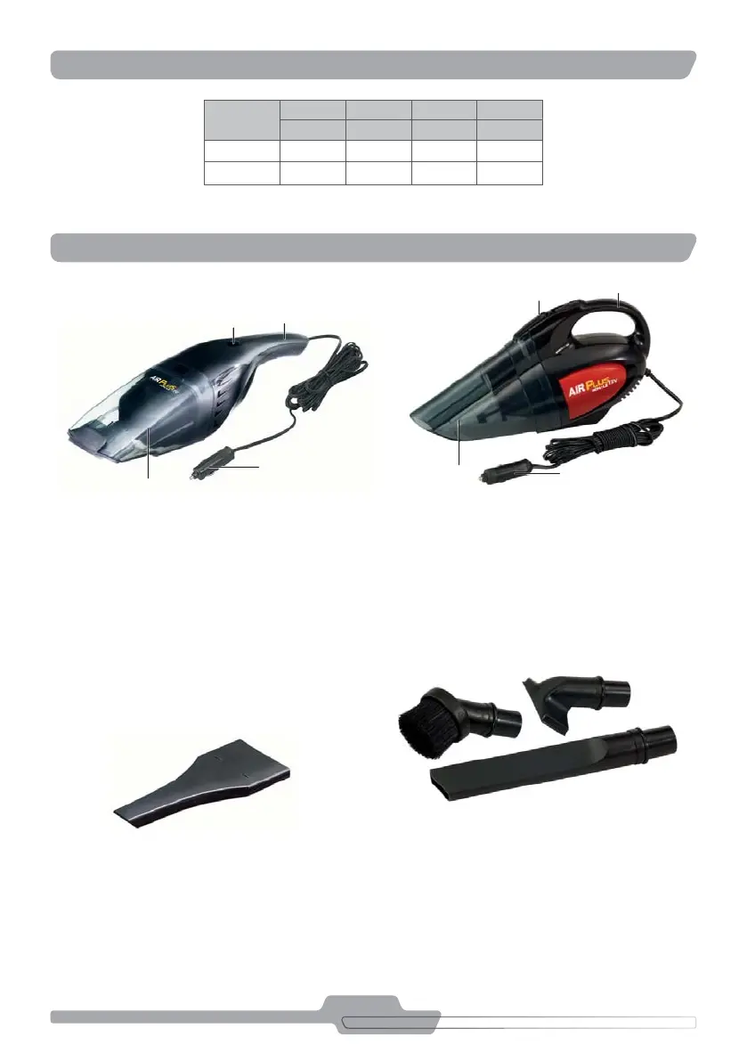 TABLE 5.1 - TECHNICAL FEATURES - AP: PORTABLE VACUUM CLEANER