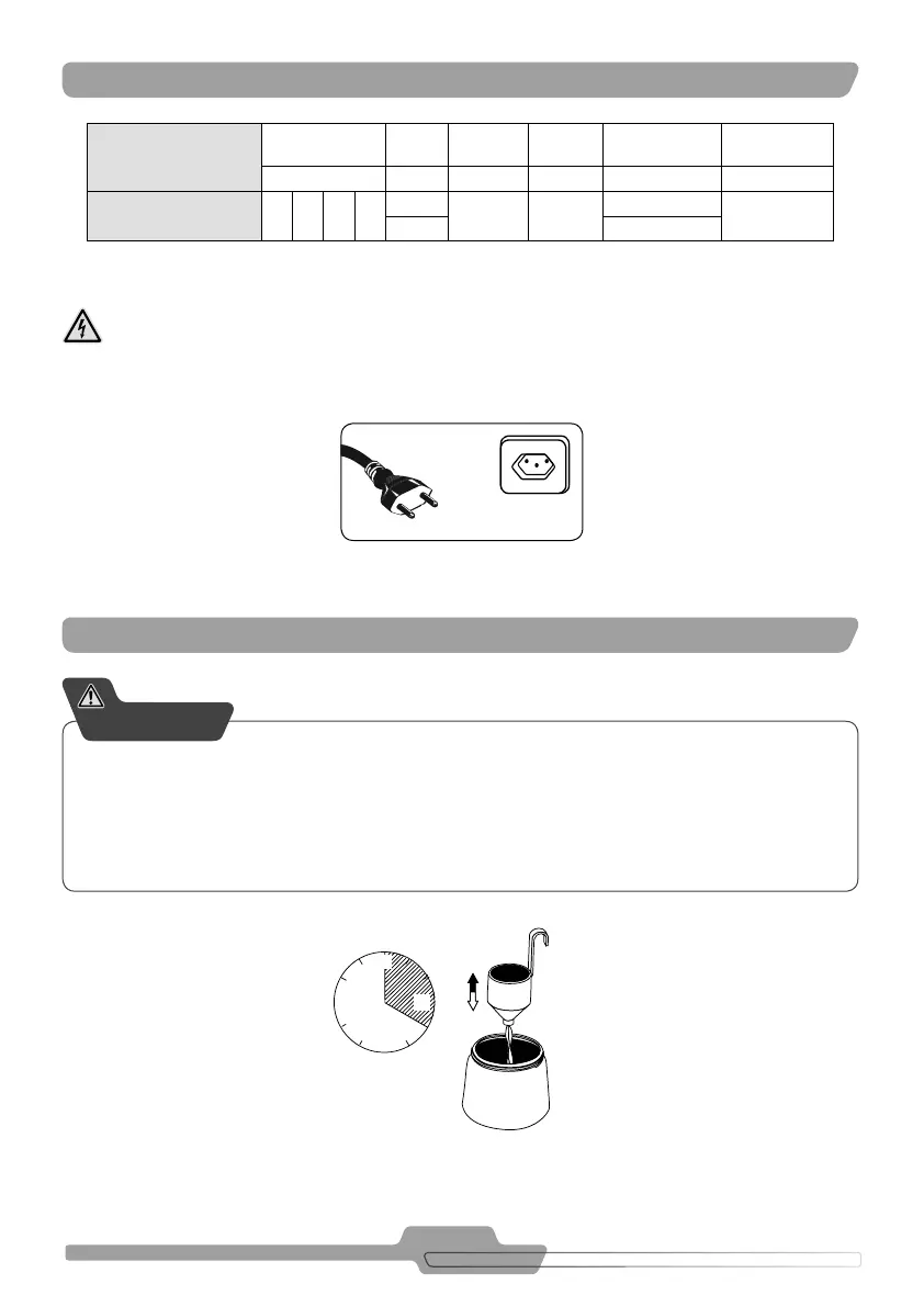 TABLE 8.1 – ELECTRIC INSTALLATION