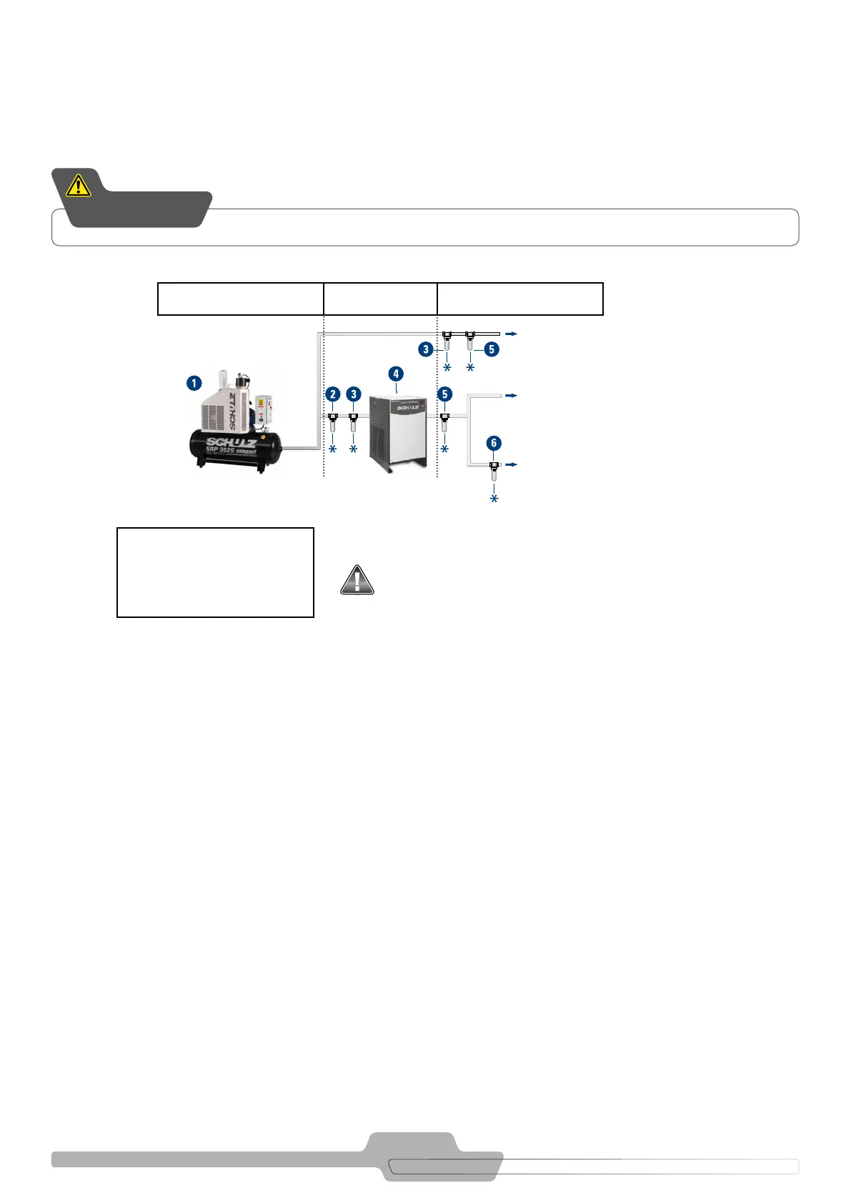 Não utilizar conexão com redução na saída do compressor ou instalar filtro(s) de linha subdimensionado(s), para não acarretar perda de