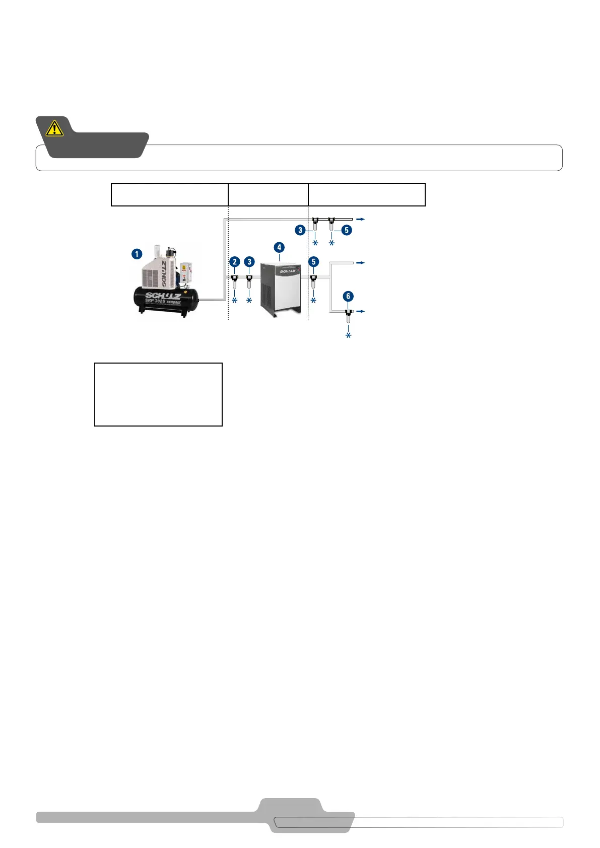 FIGURE 8.3 - TYPICAL INSTALLATION OF THE COMPRESSOR WITH PERIPHERALS FOR COMPRESSED AIR TREATMENT