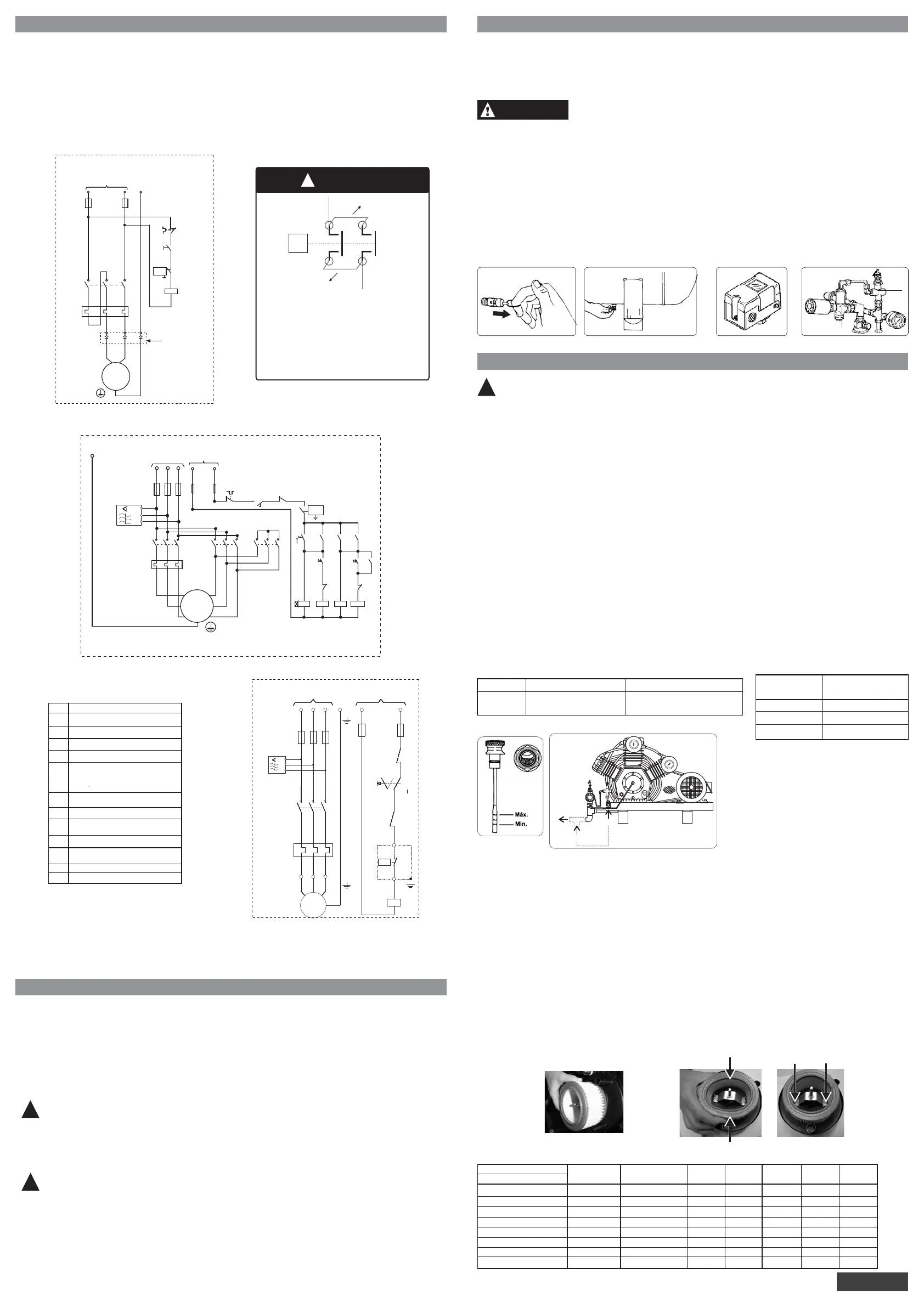 - Para motores trifásicos, recomendamos la instalación de un detector de secuencia y falta de fase en el