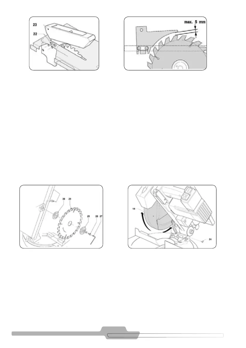 • Coloque as anges e a serra, ao colocar a lâmina de serra, certique-se de que os dentes apontam para o