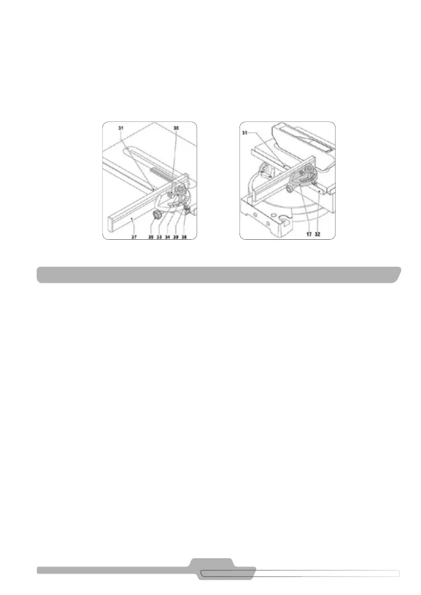 • Rotacione a régua de ângulo conforme sua necessidade e aperte o manípulo (33).
