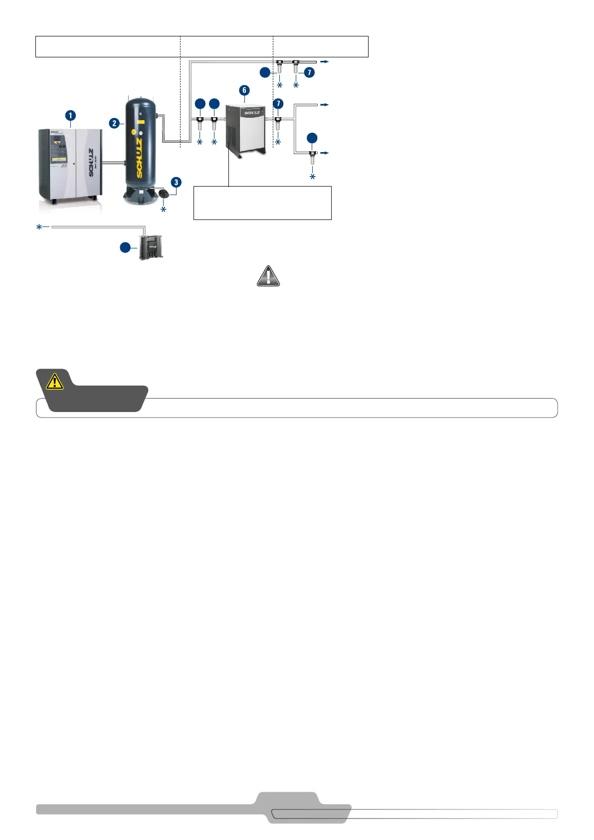 FIGURE 9.1 – A TYPICAL INSTALLATION OF A SCREW COMPRESSOR INCLUDING COMPRESSED AIR TREATMENT PERIPHERICALS