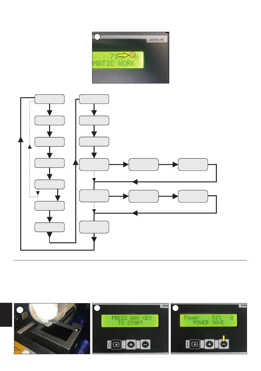 panel (image 2), then press and hold the "-" button (image 3). The machine will start the conveyor belt of powder, and after 10 seconds, the