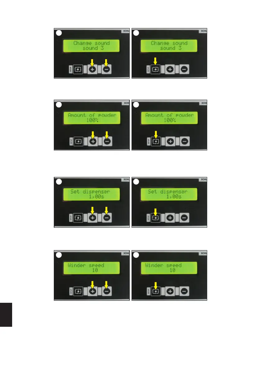 be made with the + and - buttons (image 1). Confirm the selection with the SETUP button (image 2).