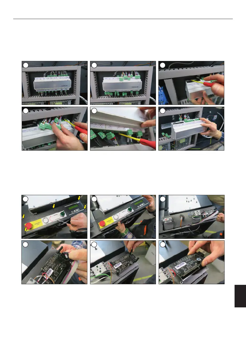 3. Unlock the mountings (2 top, 1 bottom) of the electronic (images 3-5);