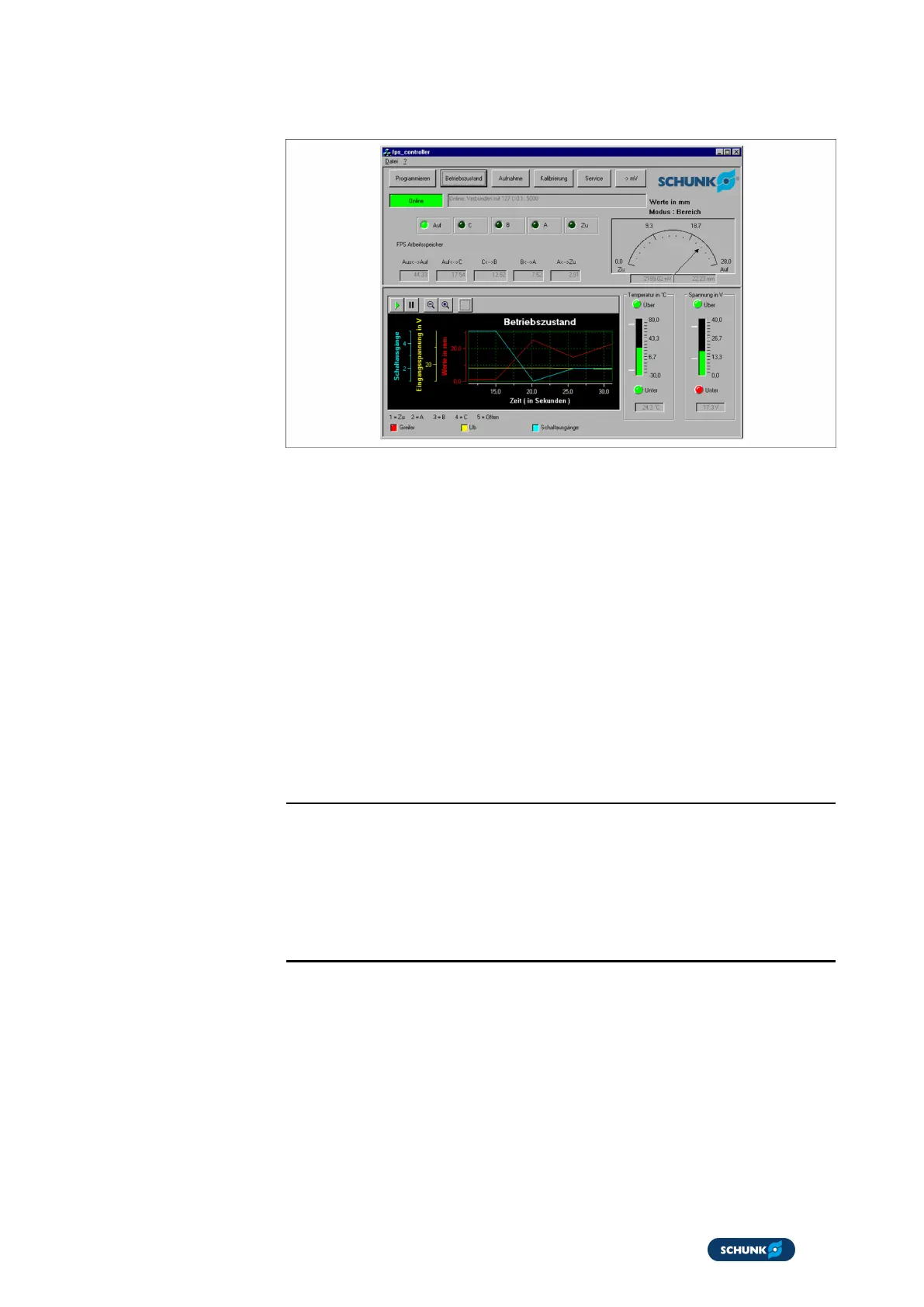 Diagram with switching outputs, input voltage and position