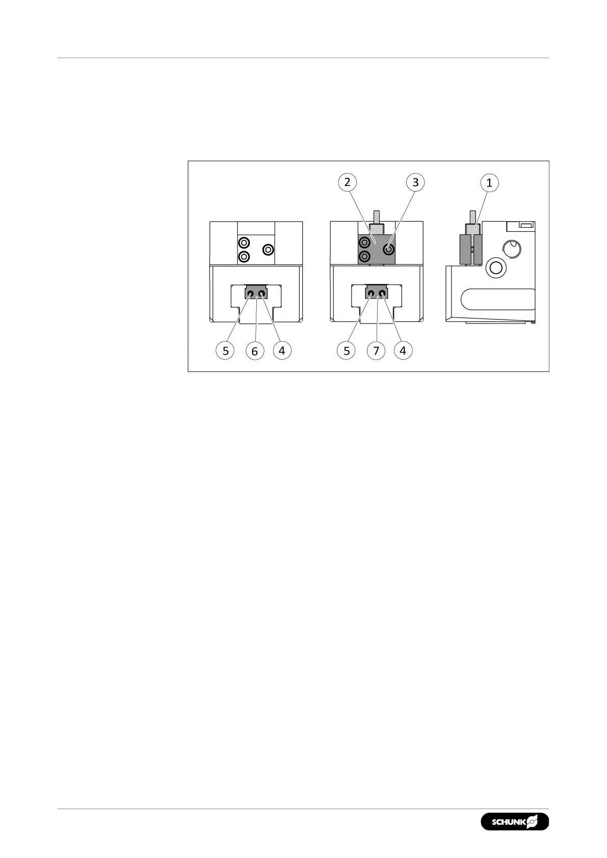 3. Slide control cam (7) from the mounting kit into the base jaw.