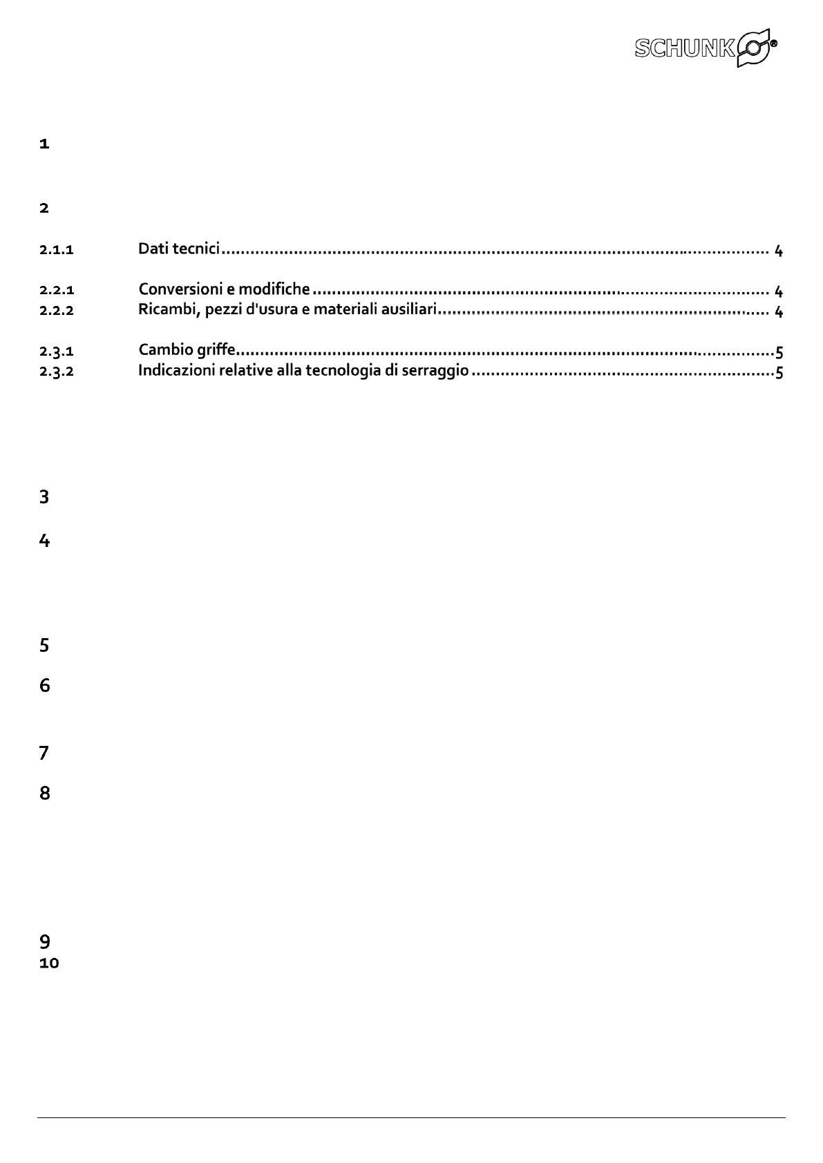 4.4 Campo di serraggio ...................................................................................................... 9