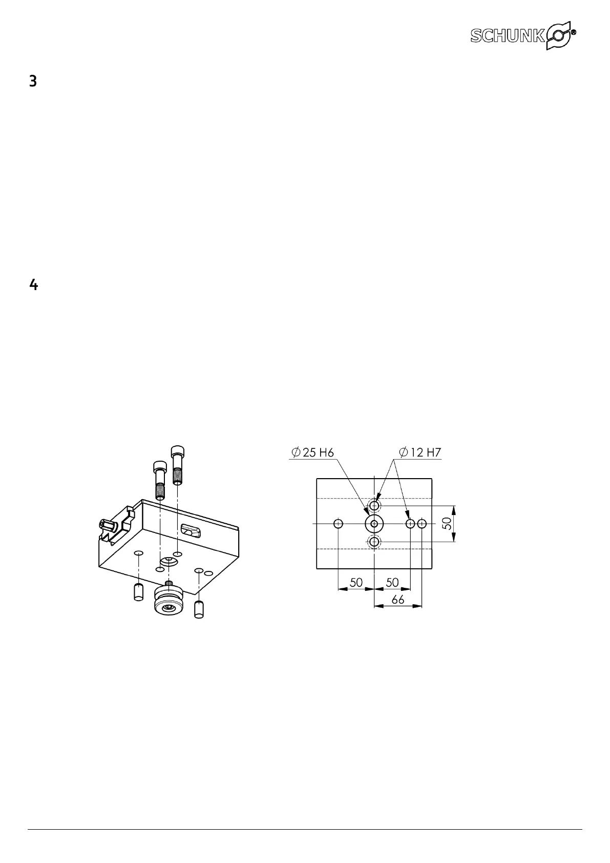 Foro di alloggiamento Ø25 H6 e foro di posizionamento Ø12 H7 (distanza 66 mm) per l'alloggiamento