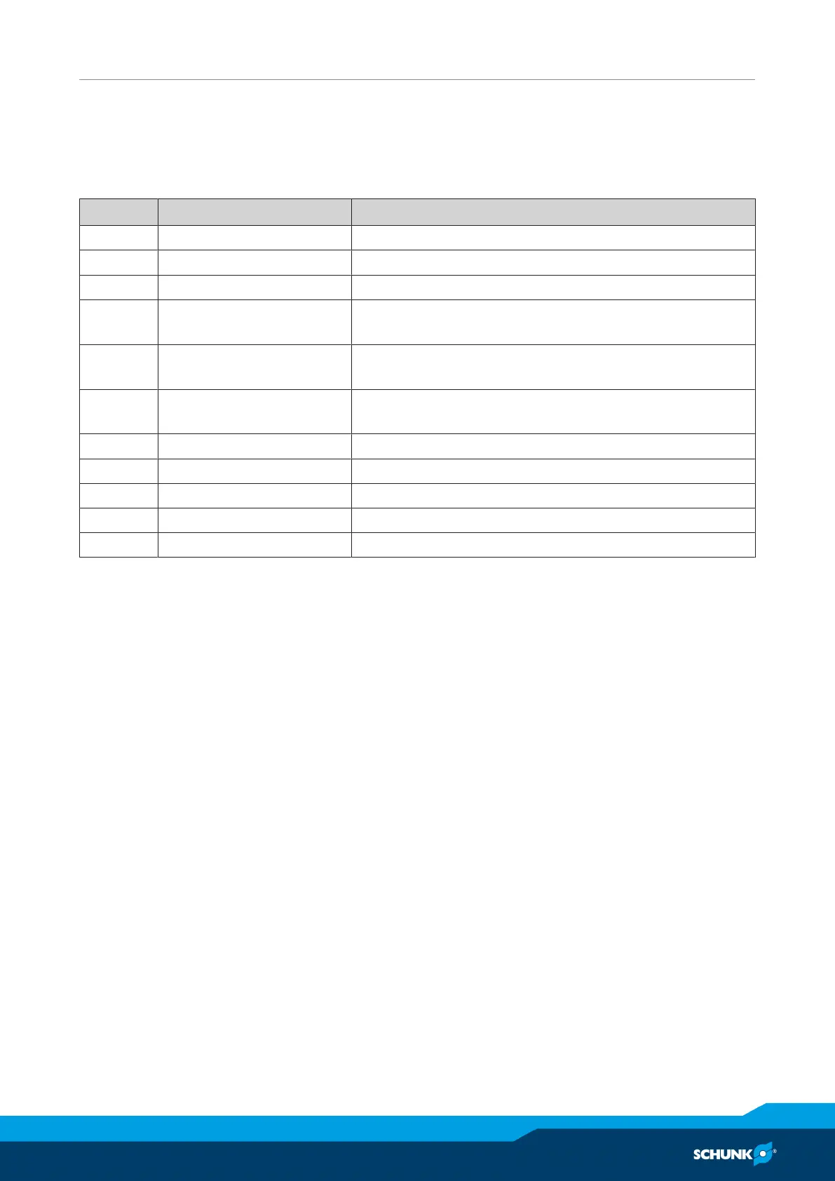 13 Gripper stopped 0V → gripper travels; 24V → standstill