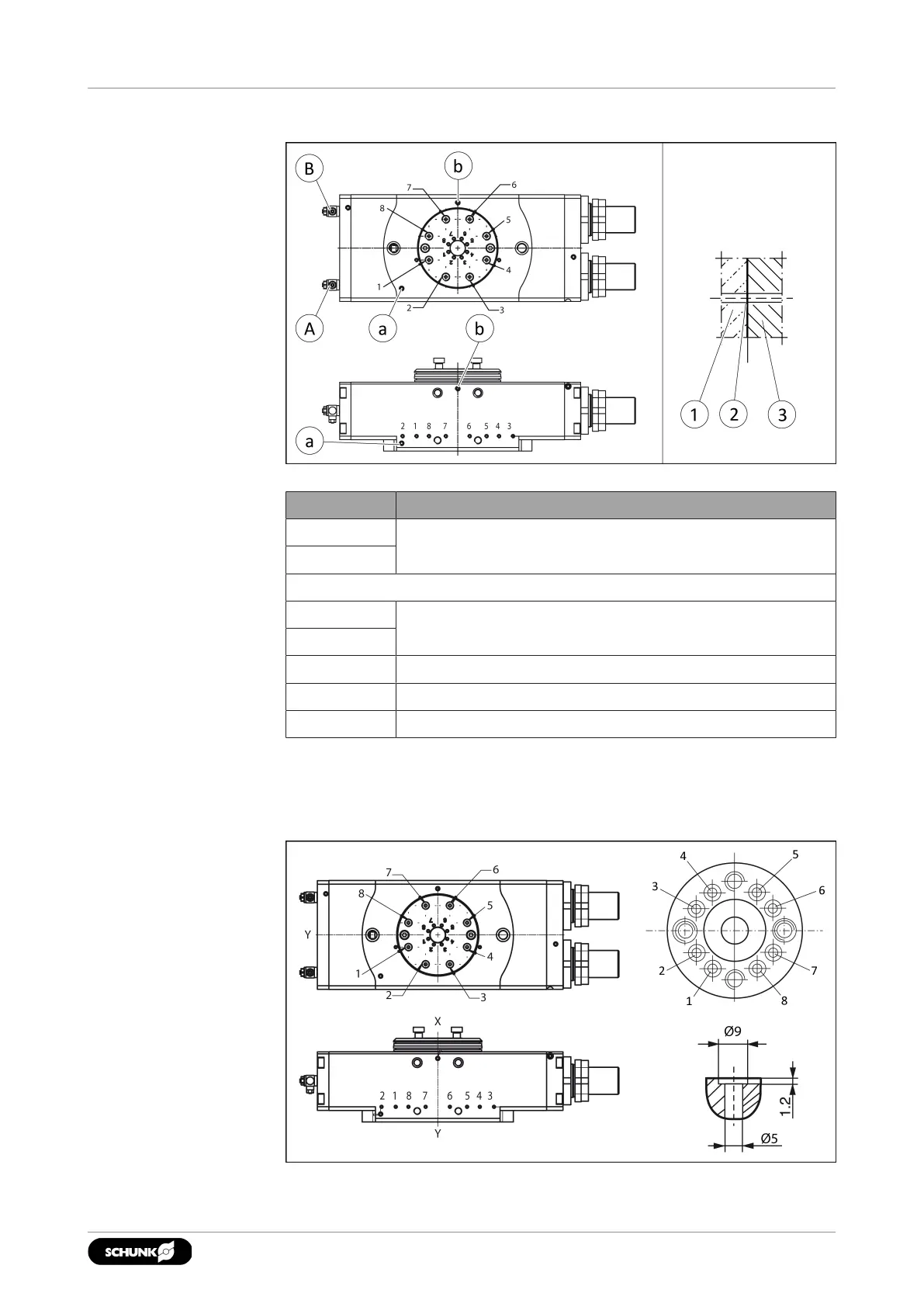 Pinion-view with swivel unit on back stop counterclockwise, connections on the left side.