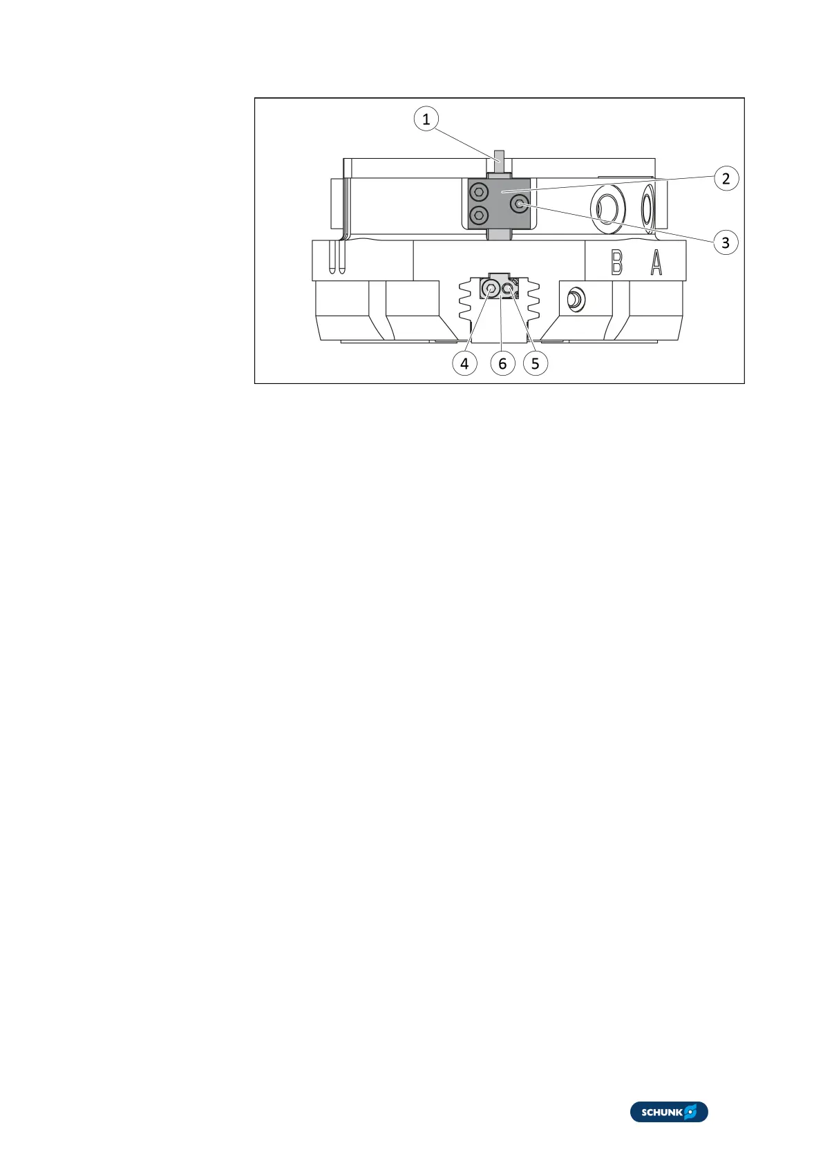 3. Remove screw(5) from the base jaw.