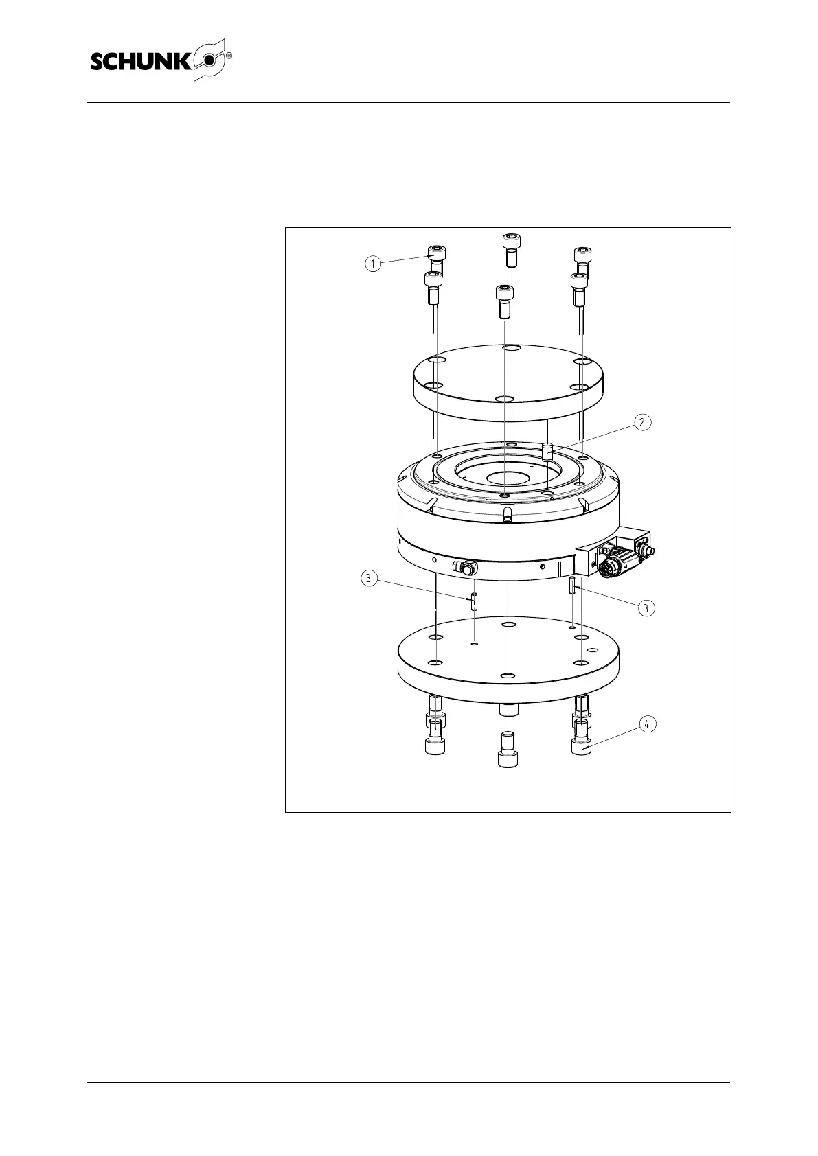 1 - Fastening screws M10 3 - Centering pin D5/H7
