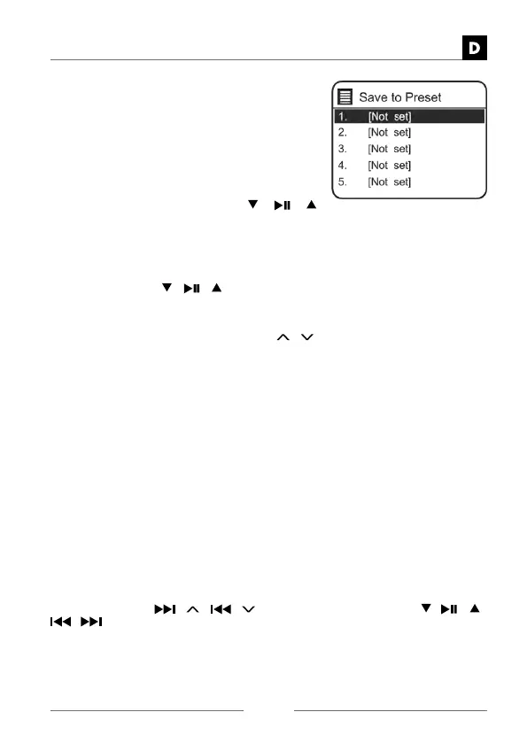 • Drücken Sie die Tasten Preset/Folder / , um die Liste der gespeicherten