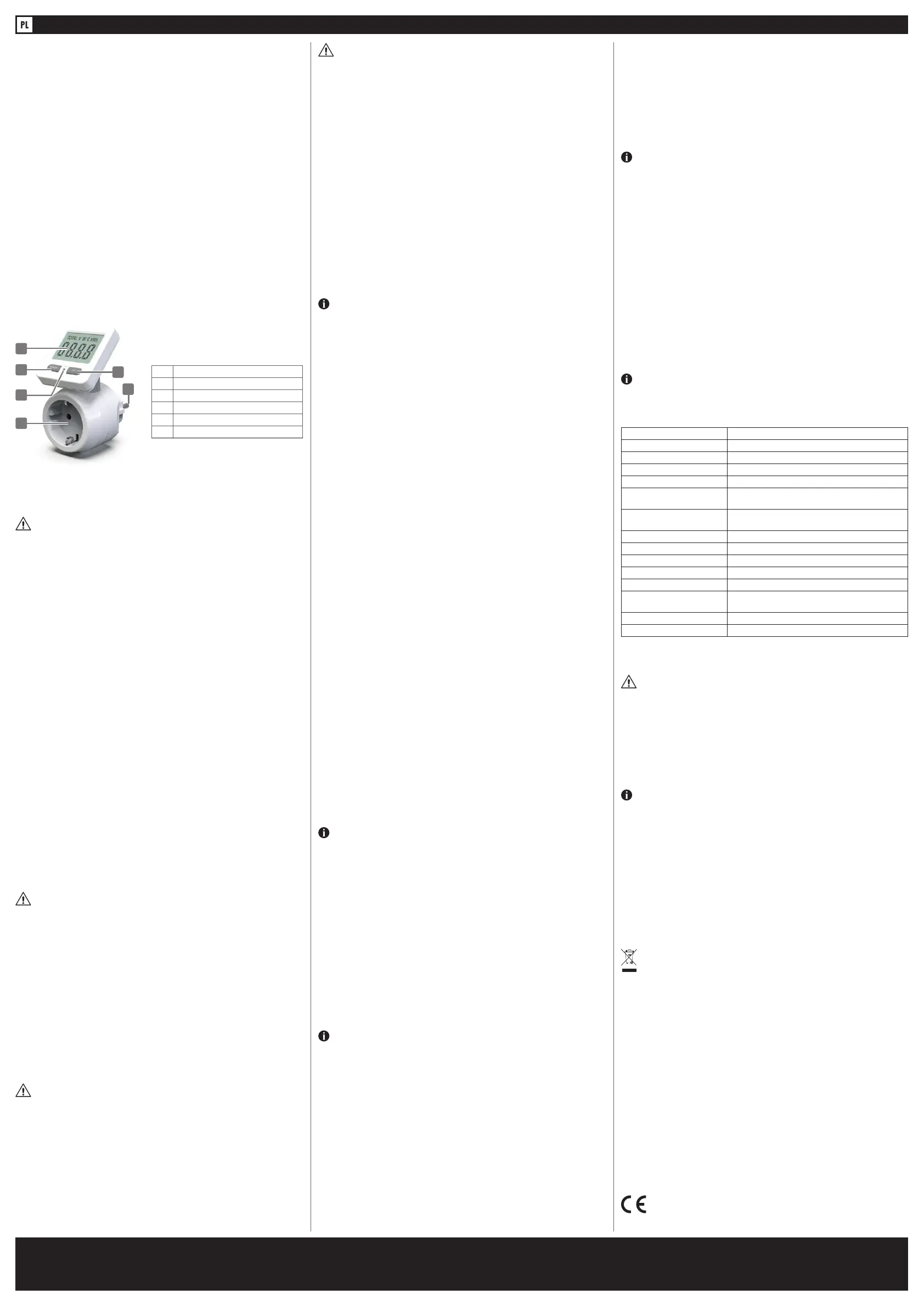 danymi urządzenia. W niniejszym produkcie zamontowano części elek-