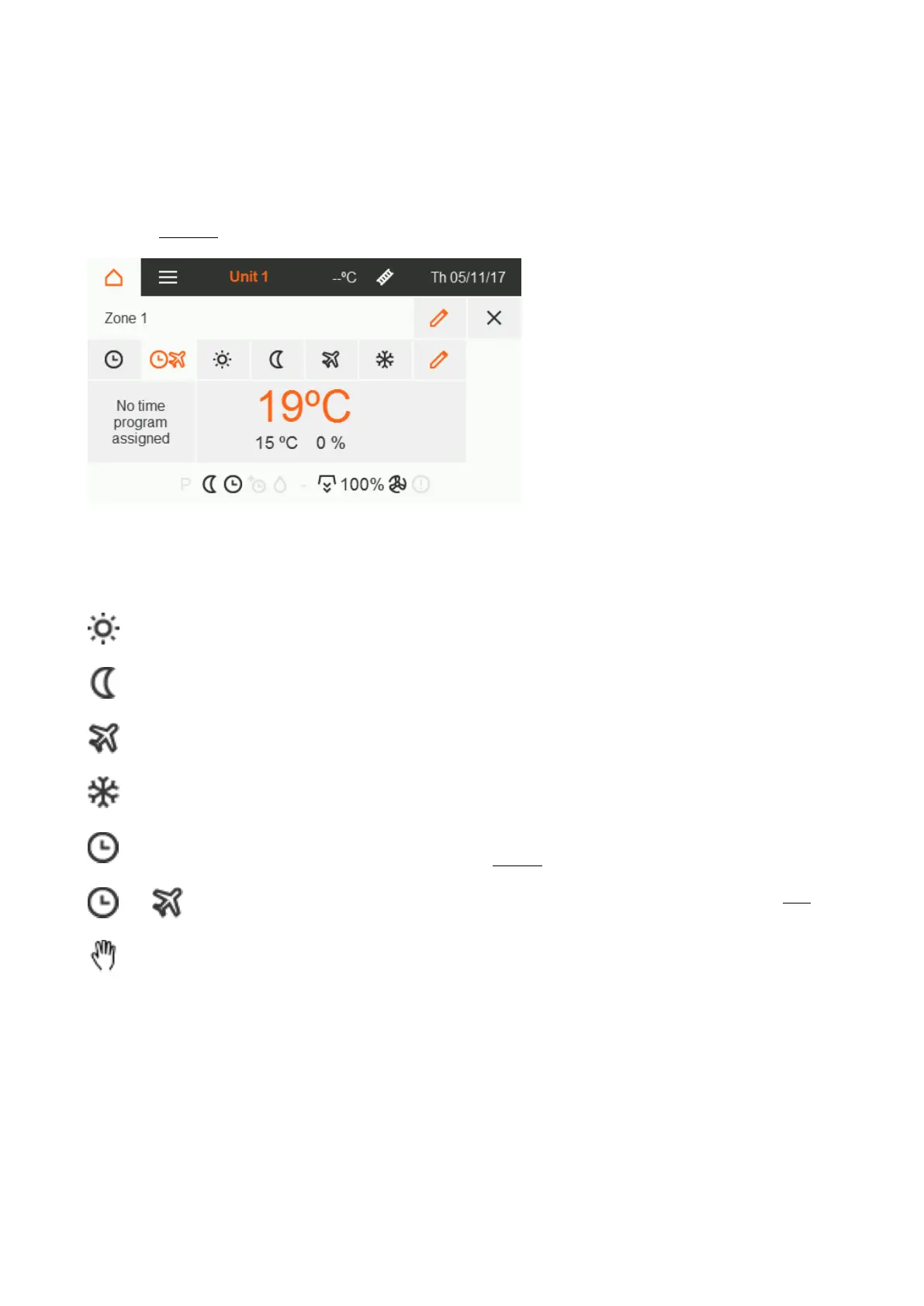 temperature in °C, the measured humidity in % and all status flags of the zone. All settings made here only