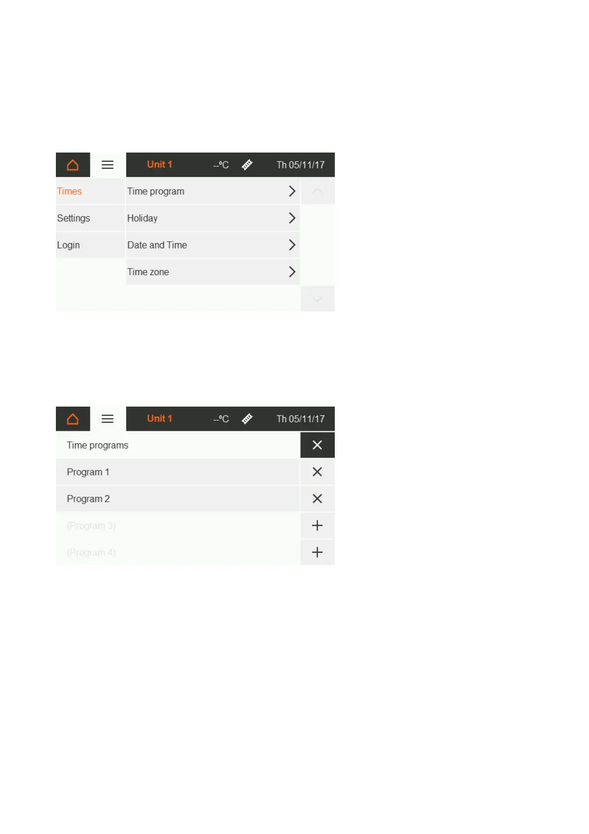 You can set and edit times under the Settings menu item on the Home screen [section 5.1].