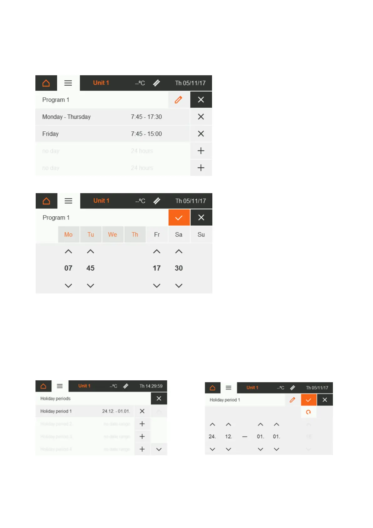 The holiday periods set here are taken into account in “Automatic mode including holidays” [section 5.3.1].