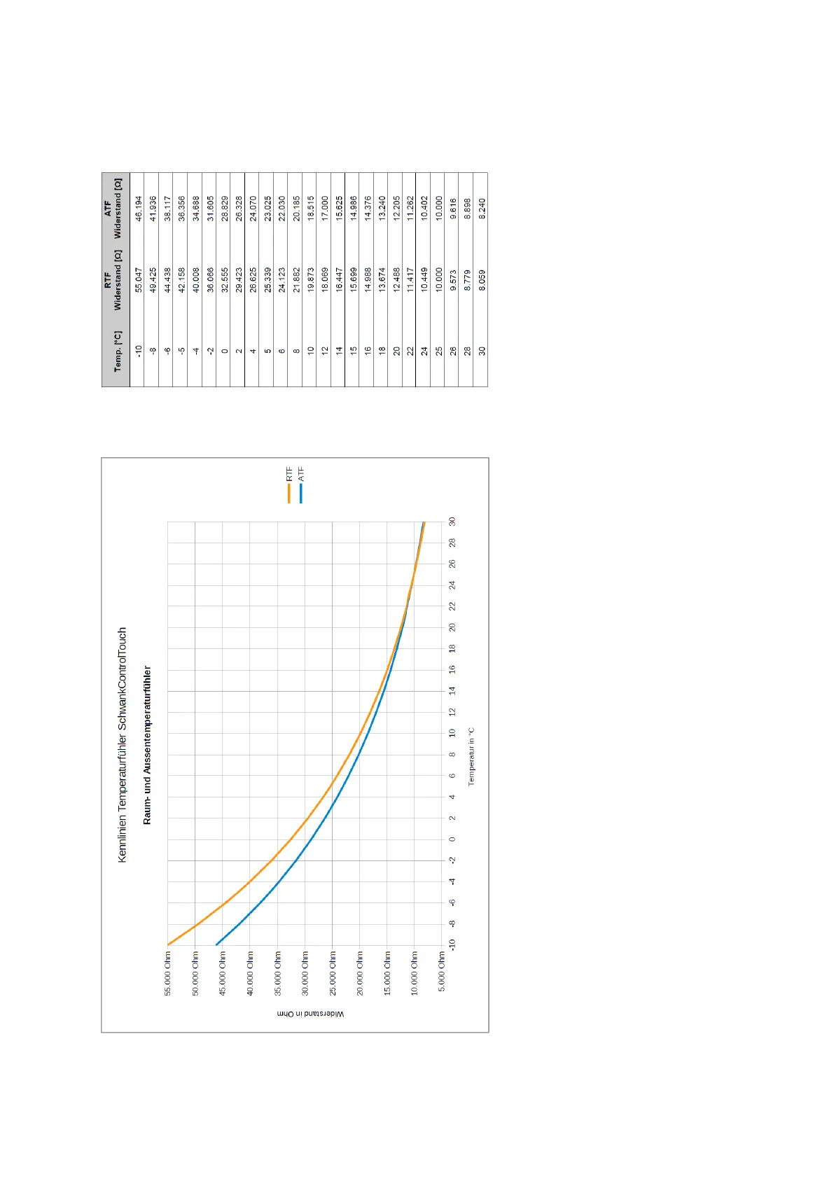Schwank Control Touch - Characteristic Sensor Curves; Temperature Sensor