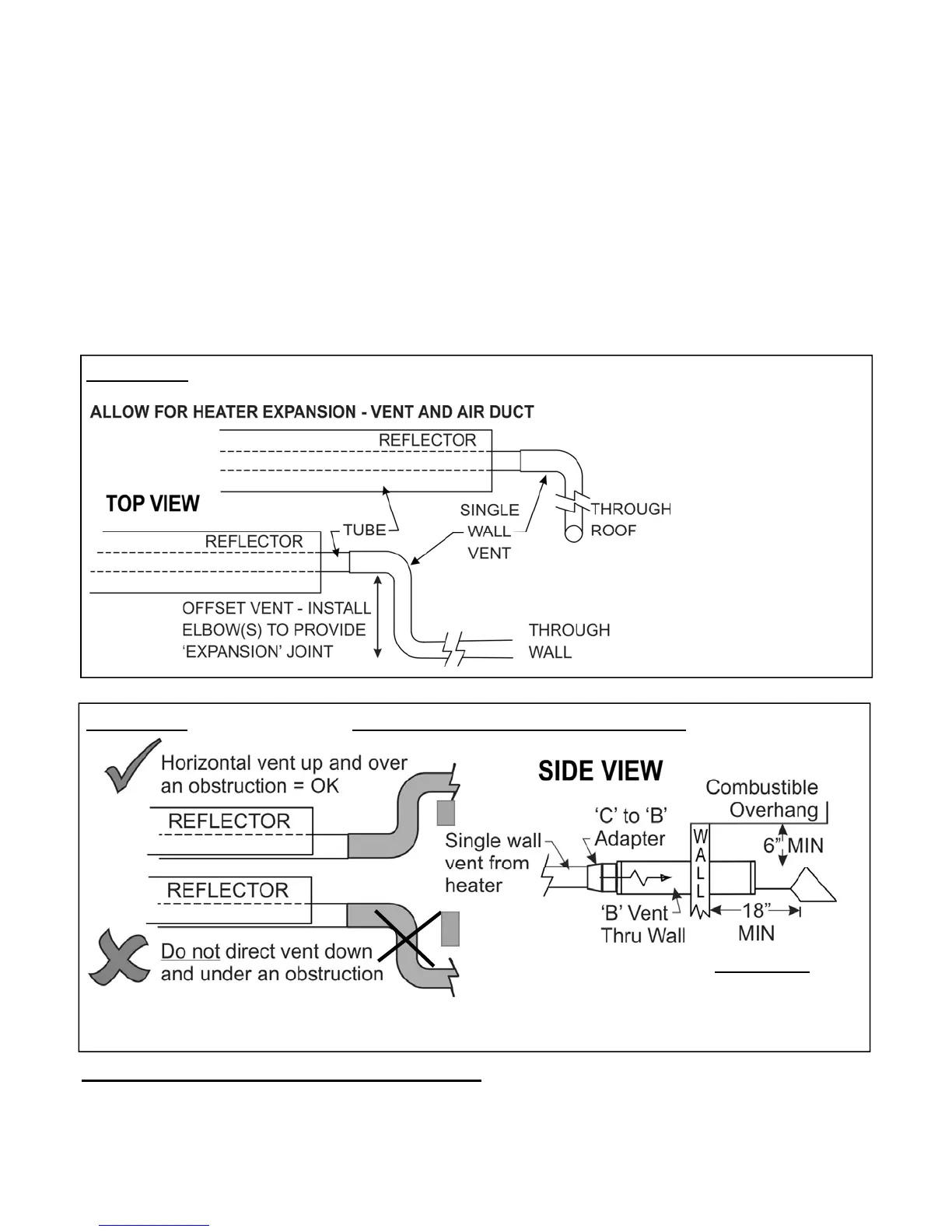 per foot (63 mm/ 300 mm) toward the vent terminal - radiant tube must be level.