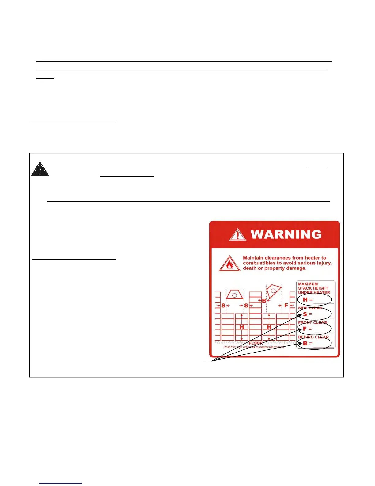 maintain the required clearances from the heater to the combustibles.