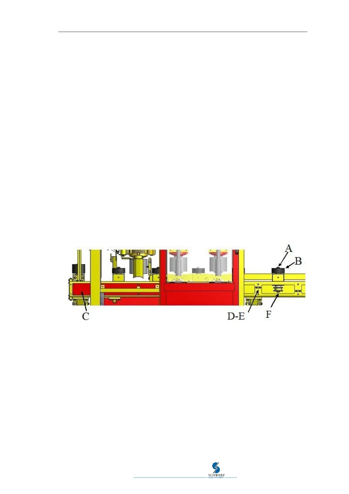 To replace the infeed chains or sprockets, remove the lateral chain box covers "C".
