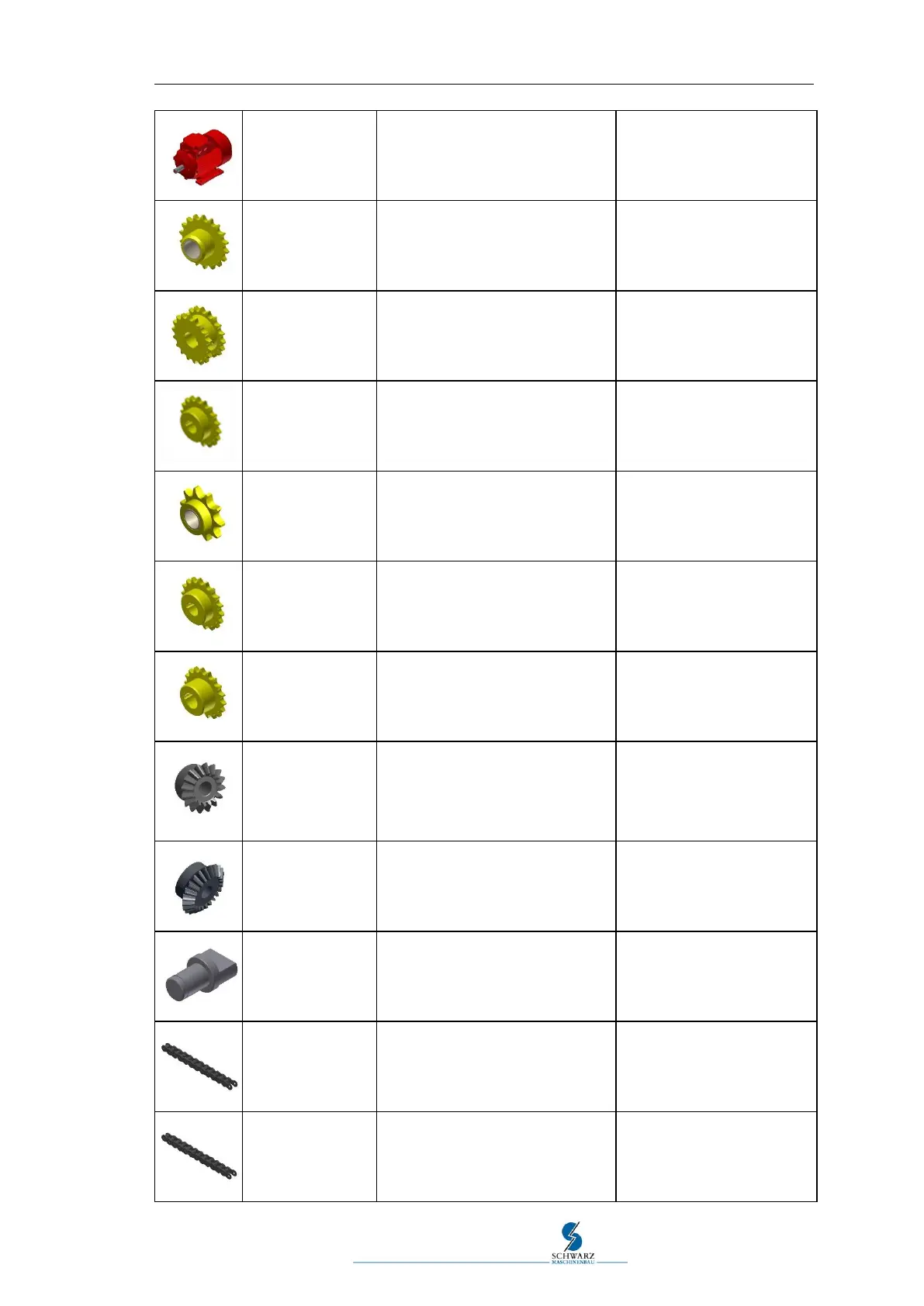 Schwarz SB10B - Table 8.2 Total List Mechanical Spare and Wear Parts