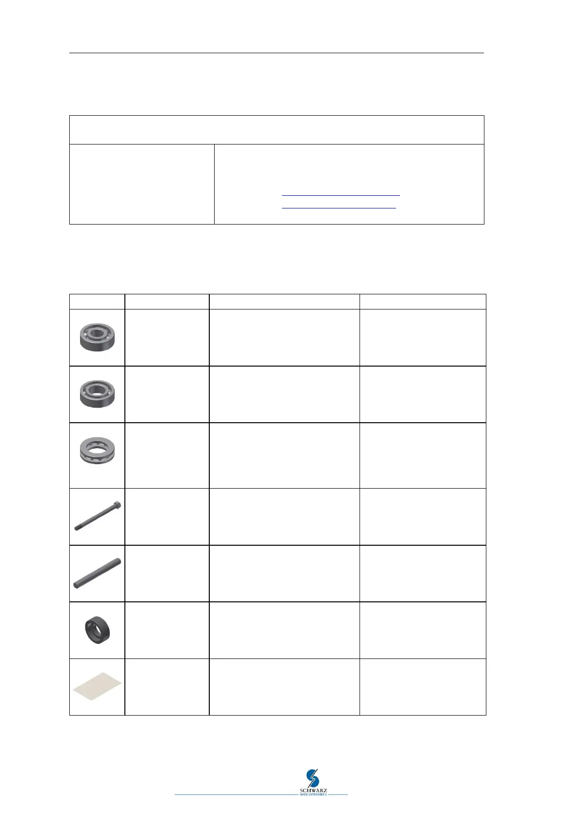 Schwarz SB10B - 8.3 General mechanical spare and wear parts