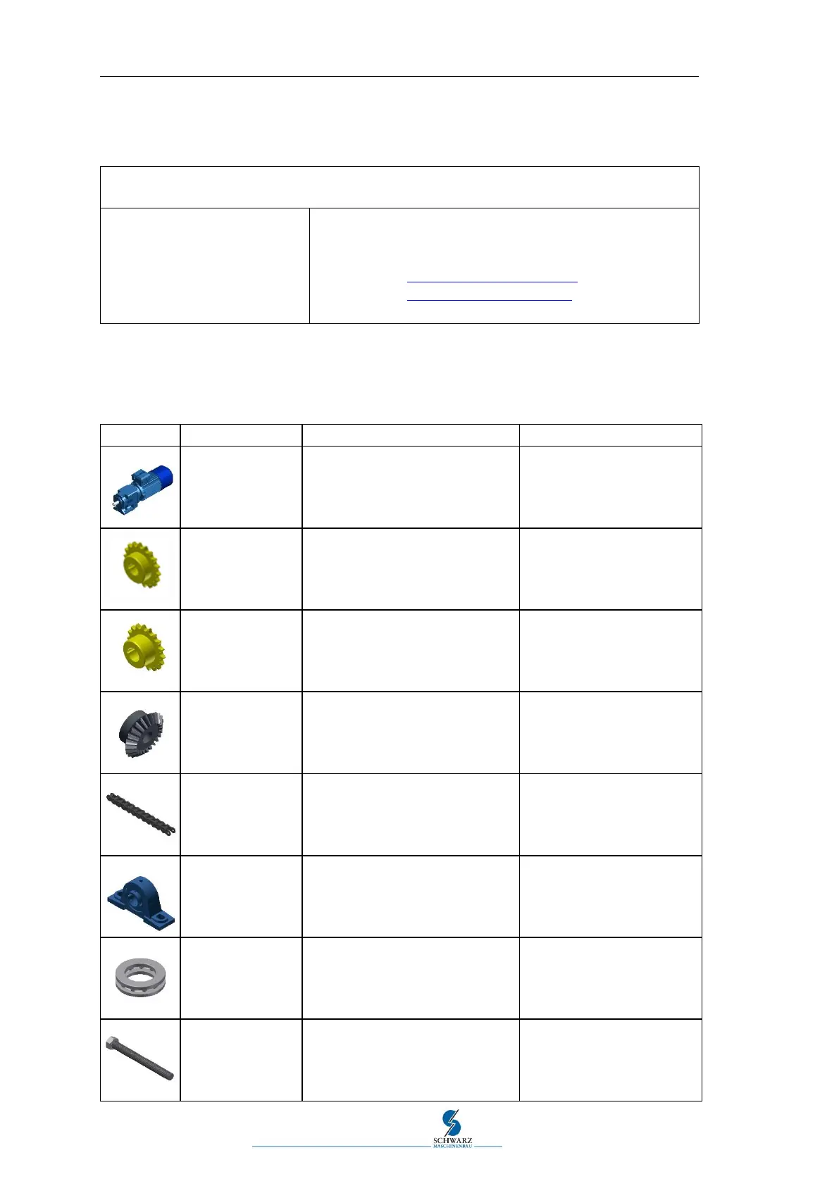 Table 8.7 Spare and wear parts width adjustment