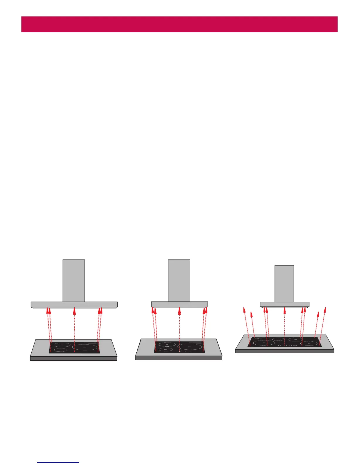 2. Never ambé any foods beneath the rangehood. The ames could cause a re.