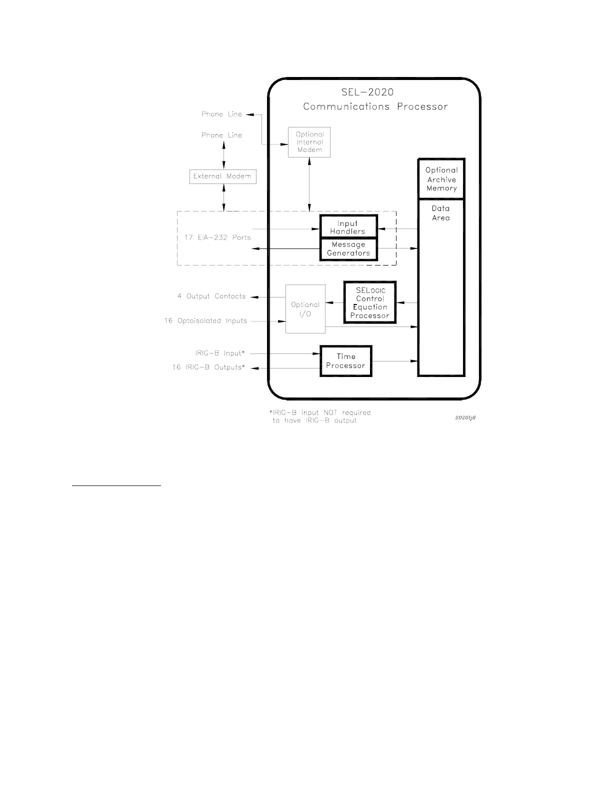 Figure 3 shows a functional model of the SEL-2020 including the Input Handlers, Message