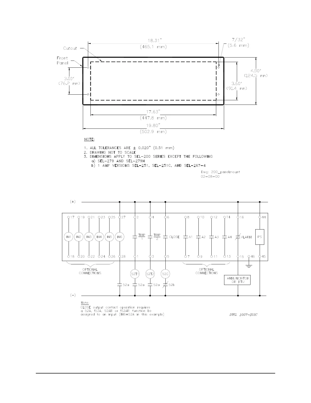 Figure 6.6: Panel Cutout Diagram for Panel-Mount Relays