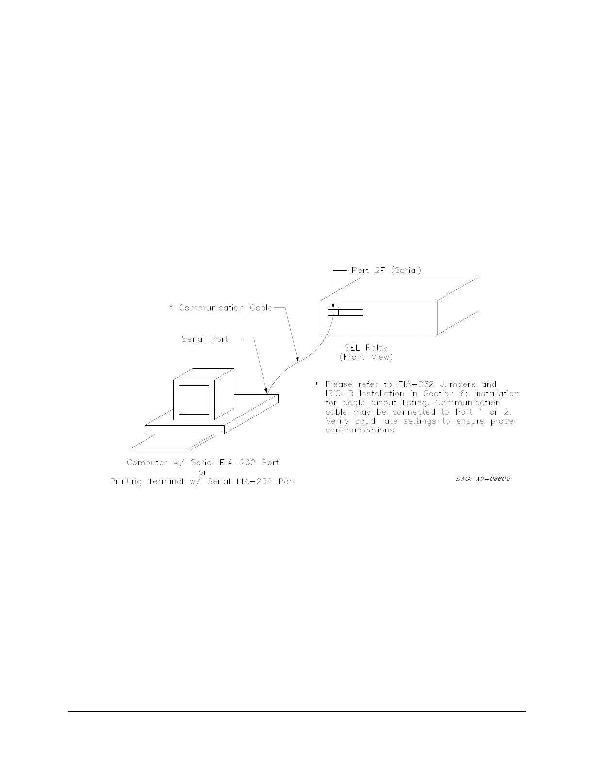 Method: Connect a computer terminal to Port 2F on the relay front panel. The terminal