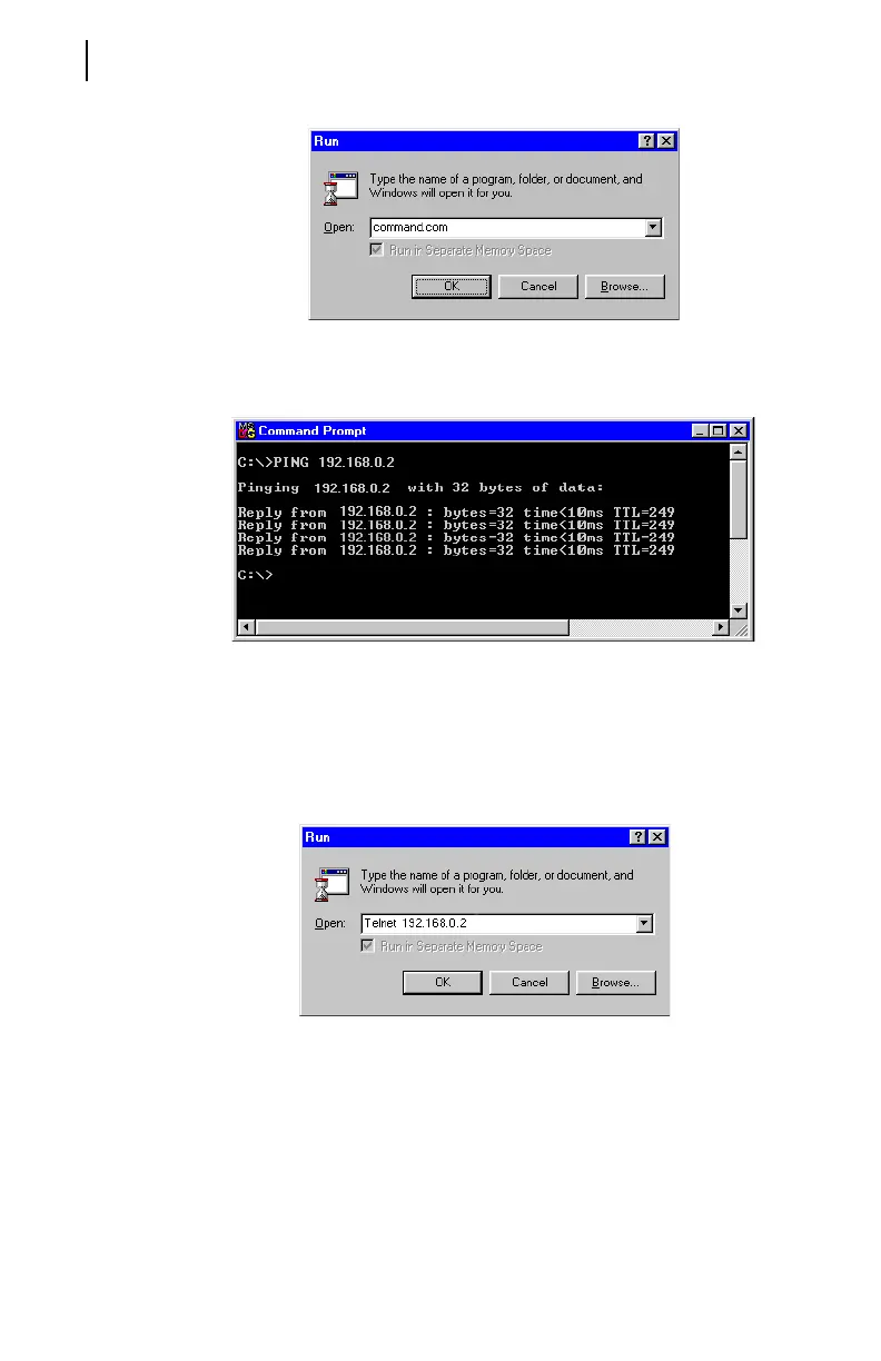 by typing TELNET, followed by your SEL-2890 IP address and port,