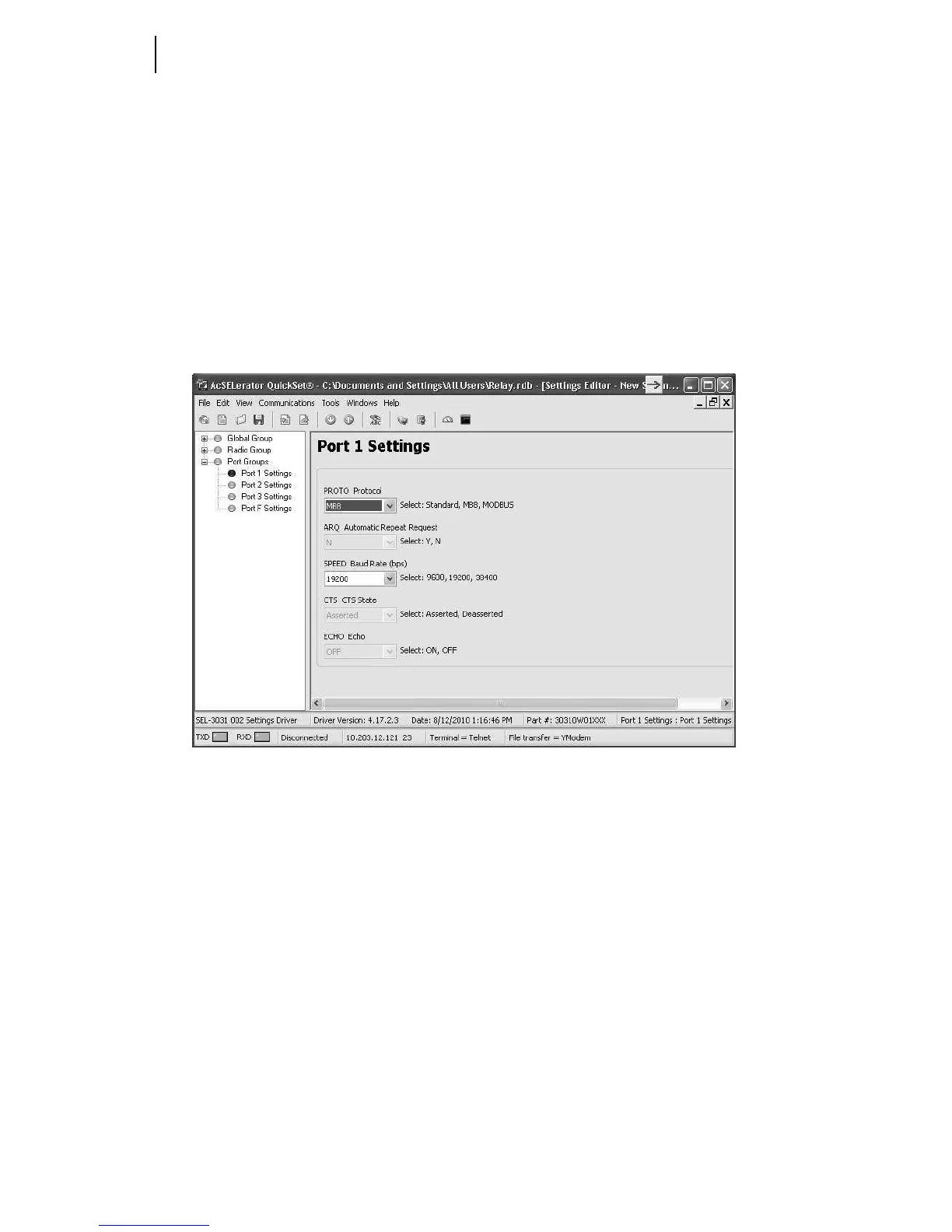 PROTO setting to MB8 to make it a MIRRORED BITS port. The SEL-3031 without an