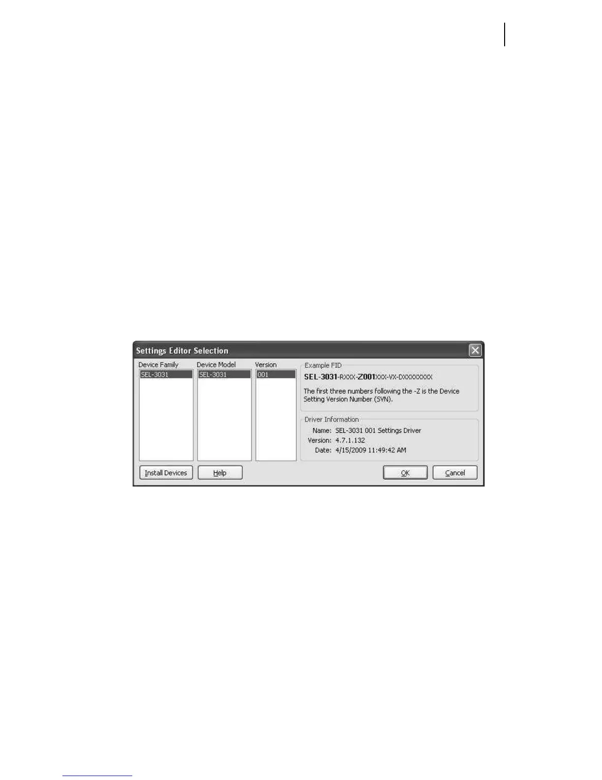 files from a driver that you specify in the Settings Editor Selection dialog box.