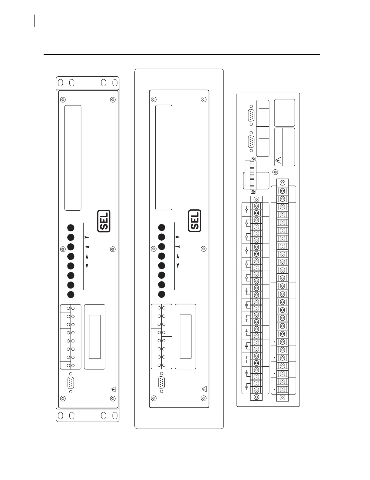 Figure 2.2 SEL-311C Front- and Rear-Panel Drawings—Models 0311C00H2 (Rack) and 0311C0032 (Panel)