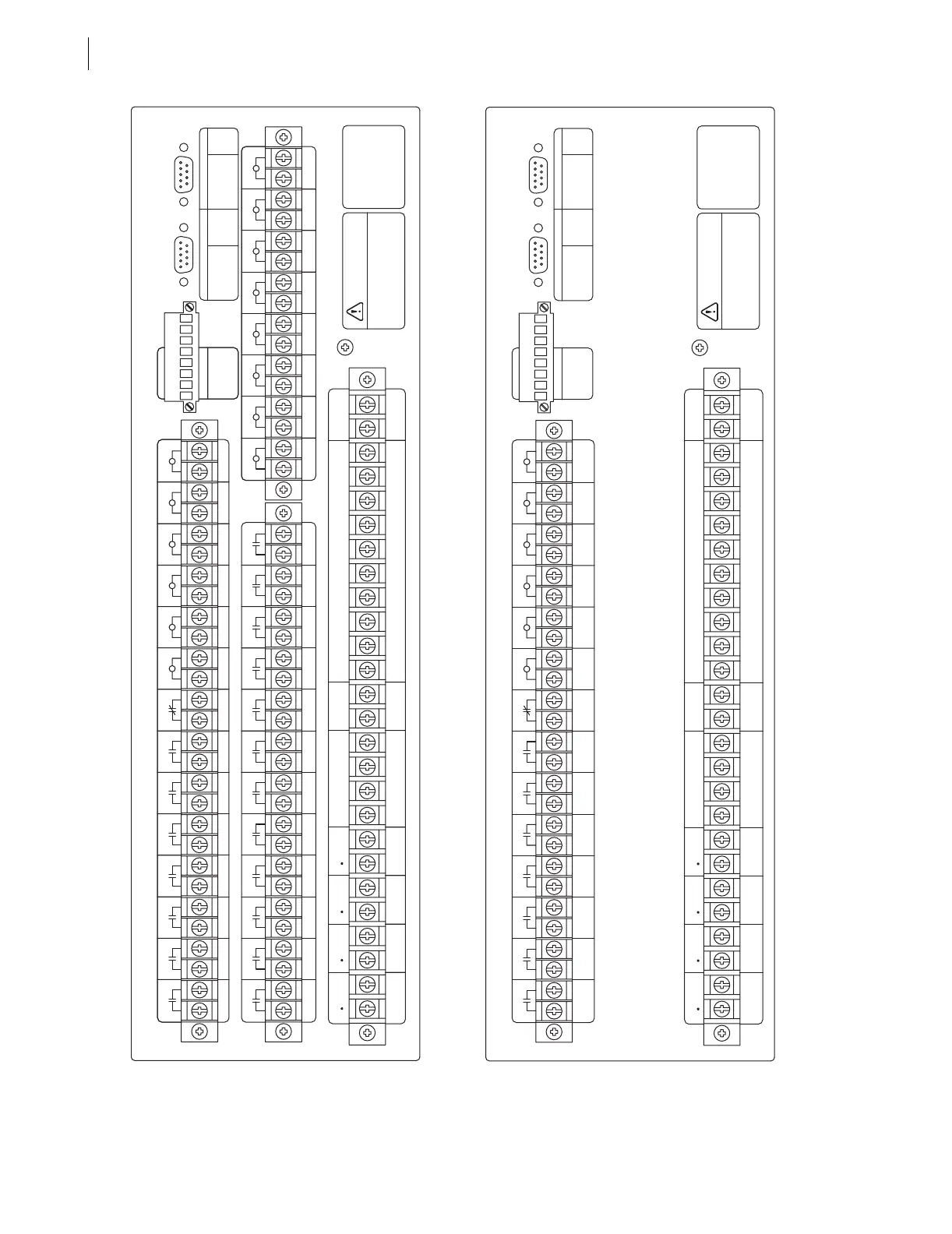 Figure 2.8 SEL-311C 3U Rear-Panel Terminal Block Drawings (With and Without Additional I/O Board)