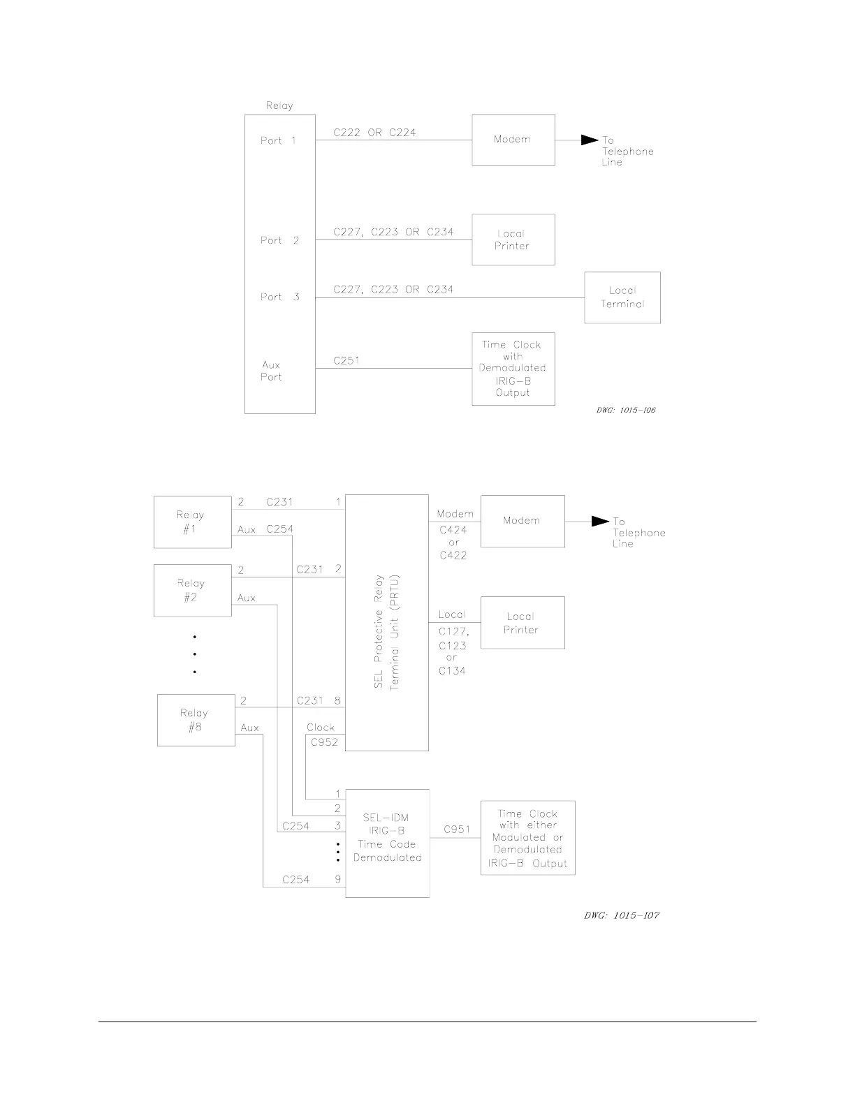 Figure 6.15: Communications and Clock Connections – One Unit at One Location